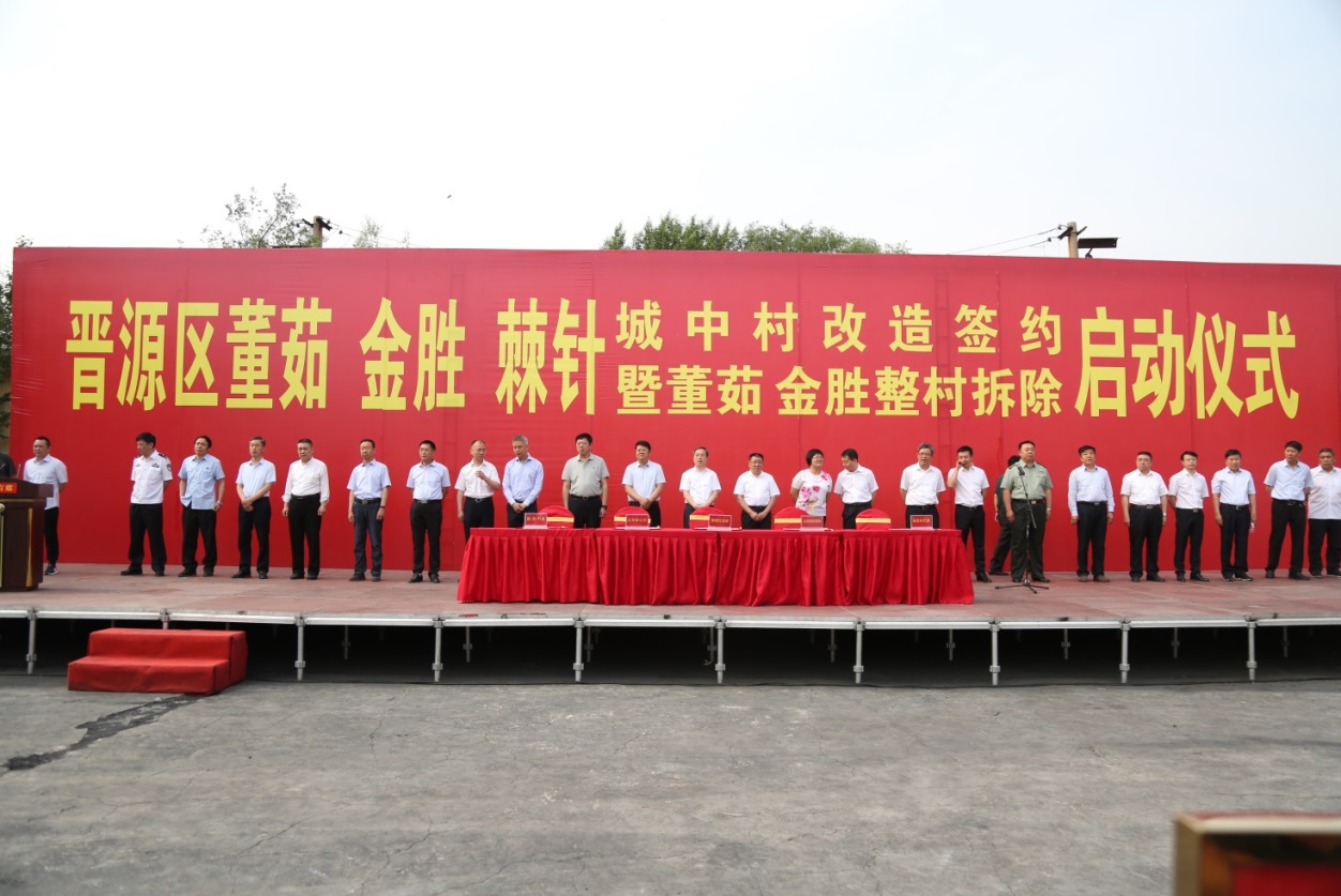 夏日如花,水光瀲滟。5月21日,晉源區(qū)城中村改造“百日攻堅”誓師大會在位于晉陽湖湖畔的董茹村舉行,董茹村、金勝村、棘針村三村城中村改造簽約儀式在現(xiàn)場群眾的期待和注視下舉行,同時也標志著我公司晉陽湖項目正式全面啟動。在誓師大會上,總經(jīng)理蘭衛(wèi)軍同志代表太原國有投資集團有限公司與晉源區(qū)人民政府、晉源區(qū)經(jīng)投公司、金勝鎮(zhèn)、羅城街辦、董茹、金勝、棘針三村村委會負責(zé)人簽署了城中村改造合作協(xié)議。晉源區(qū)四大班子領(lǐng)導(dǎo),市住建委、市城改辦領(lǐng)導(dǎo)出席并見證簽約儀式;區(qū)委、區(qū)政府所屬18個部門;3個鎮(zhèn)(街)干部及駐村人員;太原國有投資集團有限公司、晉陽湖管理中心、區(qū)經(jīng)投公司、區(qū)城改辦、公安巡防大隊、民兵應(yīng)急隊共計500余人參會。