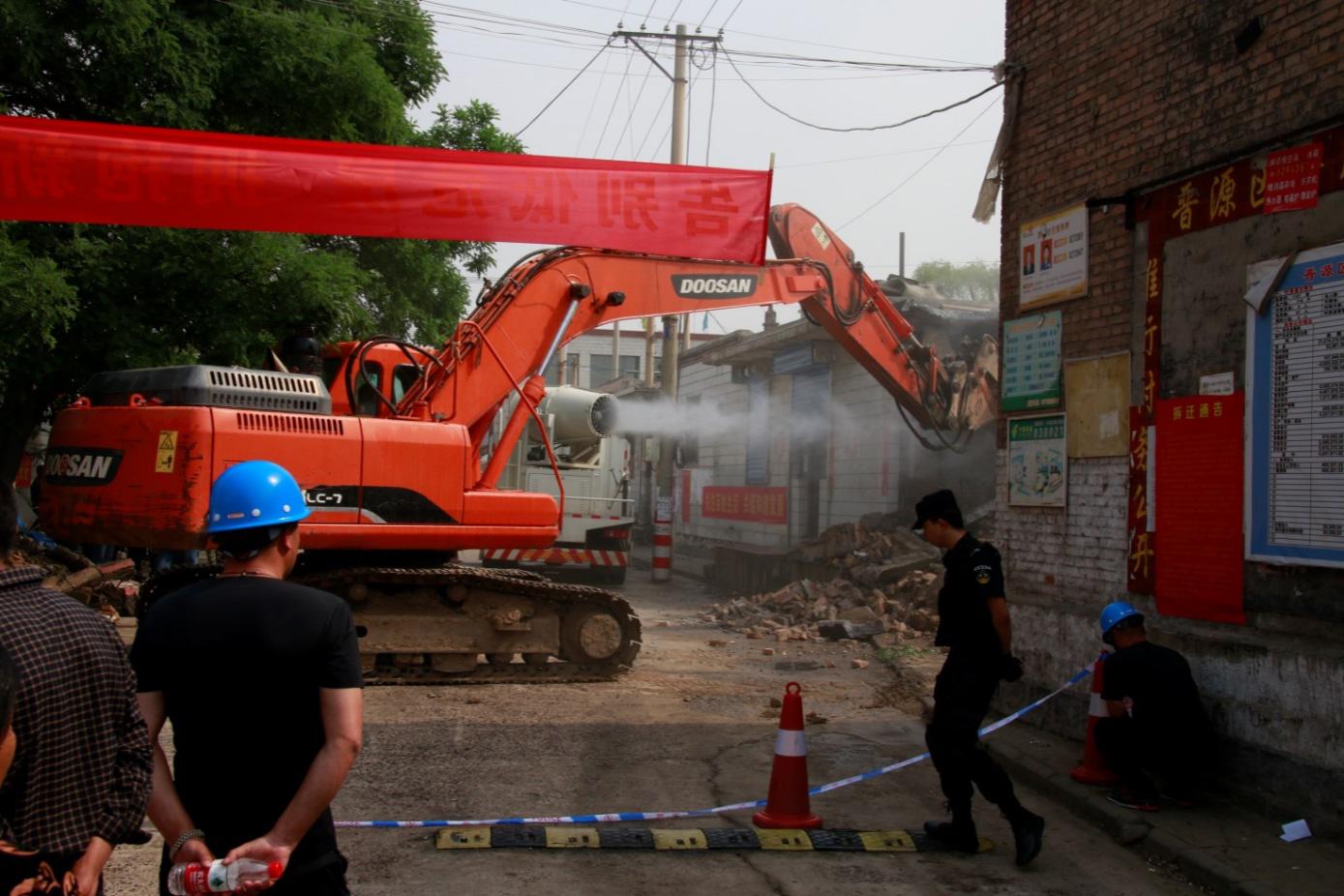 圖為:動員會后,董茹村、金勝村同時實施村民宅院的拆除作業(yè)。整村拆除預(yù)計9月初完成。