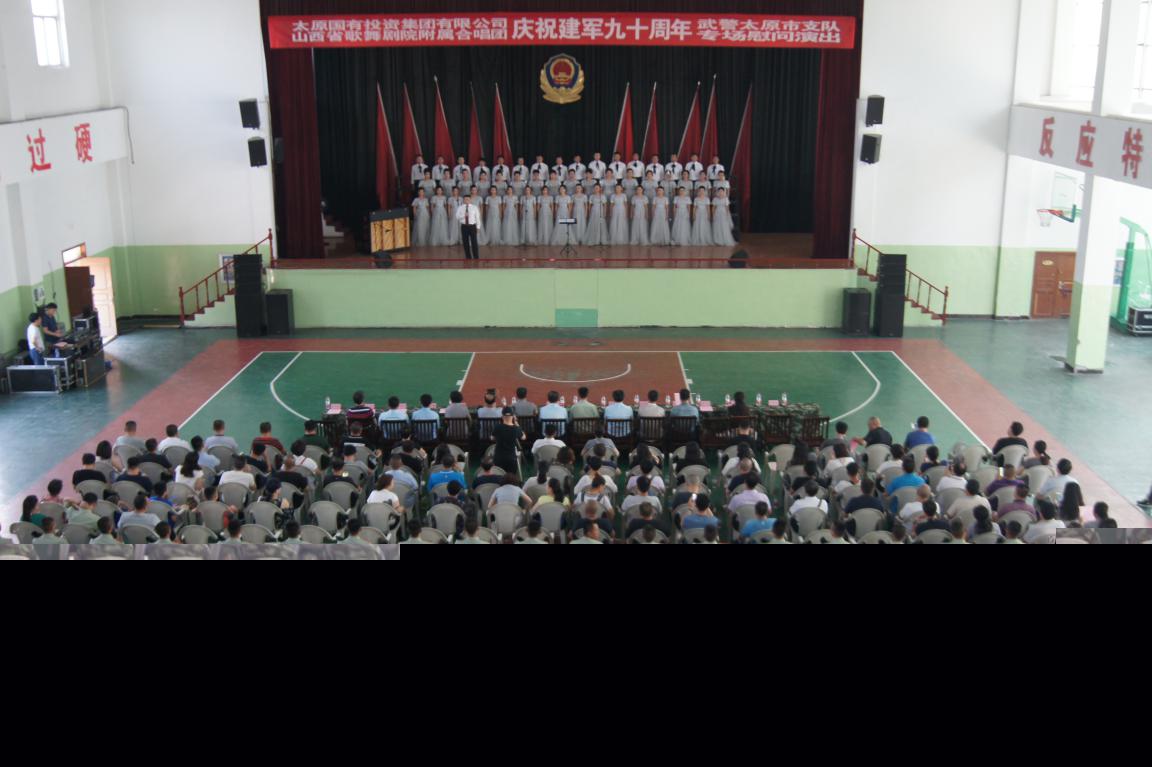 下午15:00,全體人員在一大隊綜合訓練館觀看了由太原國投集團冠名的專場慰問演出,演出節(jié)目有山西省歌舞劇院附屬合唱團帶來的《黃河大合唱》部分曲目,長征組歌等;更有武警太原市支隊一大隊演唱的《中國武警進行曲》,曲調(diào)鏗鏘有力,博得觀眾陣陣掌聲,將音樂會推向了高潮!最后在混聲合唱《保衛(wèi)黃河》的歌聲中,慰問演出圓滿結(jié)束。