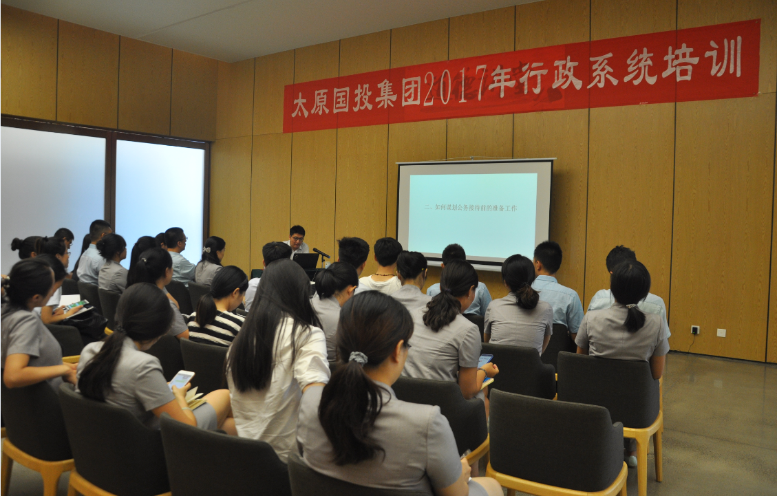 為了全面提升公司行政人員的職業(yè)素養(yǎng)、崗位技能及綜合能力,加強團隊建設(shè)和企業(yè)文化建設(shè),公司決定開展行政系統(tǒng)系列學習培訓。8月15日下午,2017年太原國投集團行政系統(tǒng)首次培訓學習于贊城項目營銷中心二樓會議室正式舉行,本次培訓主題為公務(wù)接待,由省人大常委會城鄉(xiāng)建設(shè)環(huán)境保護工作委員會辦公室常青副主任現(xiàn)場授課。集團及各子公司、合資公司行政人員參加了本次培訓。