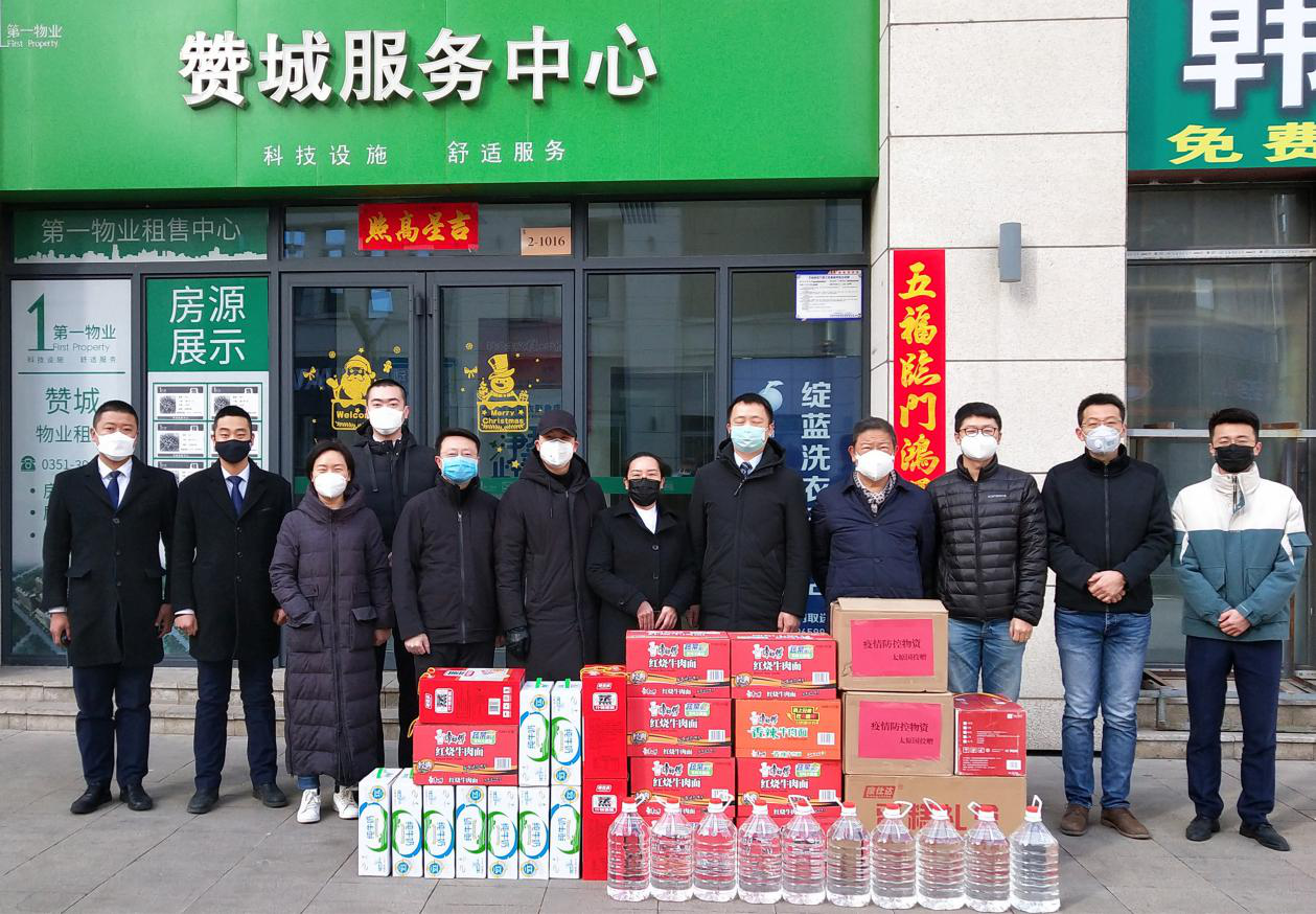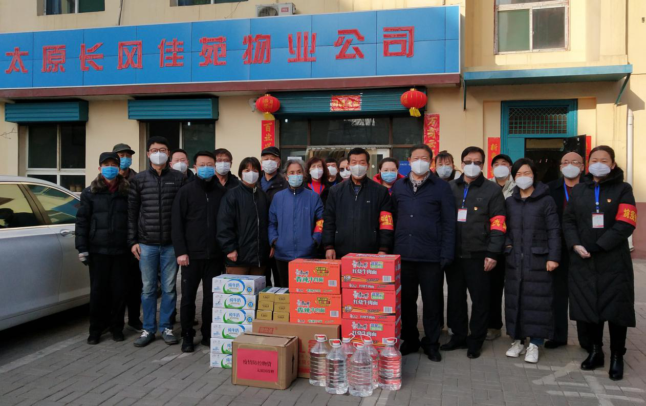 2020年2月21日,太原國有投資集團(tuán)有限公司疫情防控工作領(lǐng)導(dǎo)組一行深入太變小區(qū)、太洗宿舍、國興小區(qū)、贊城小區(qū)等疫情防控一線了解疫情防控工作開展情況,慰問長風(fēng)佳苑物業(yè)、芳苑企業(yè)管理公司、田園信達(dá)物業(yè)、第一物業(yè)的工作人員及協(xié)同作戰(zhàn)在疫情防控一線的志愿者。