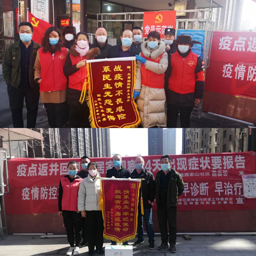 2020年3月10日下午,國興小區(qū)疫情防護(hù)工作組的人員正在井然有序的忙碌著,這時(shí),一位業(yè)主手拿一幅寫著“戰(zhàn)疫情不畏艱險(xiǎn)、系民生無怨無悔”的錦旗,送到國興小區(qū)西門房。3月11日上午,同樣的地點(diǎn),我們又收獲了“情系業(yè)主 牢記使命 擔(dān)當(dāng)有為 勇戰(zhàn)疫情”的錦旗一幅。業(yè)主的話語都是一樣的:“感謝你們這么長時(shí)間辛勤的付出,保護(hù)著我們的家園不被病毒侵襲”,我們的回答也一樣:“這是我們應(yīng)該做的”!