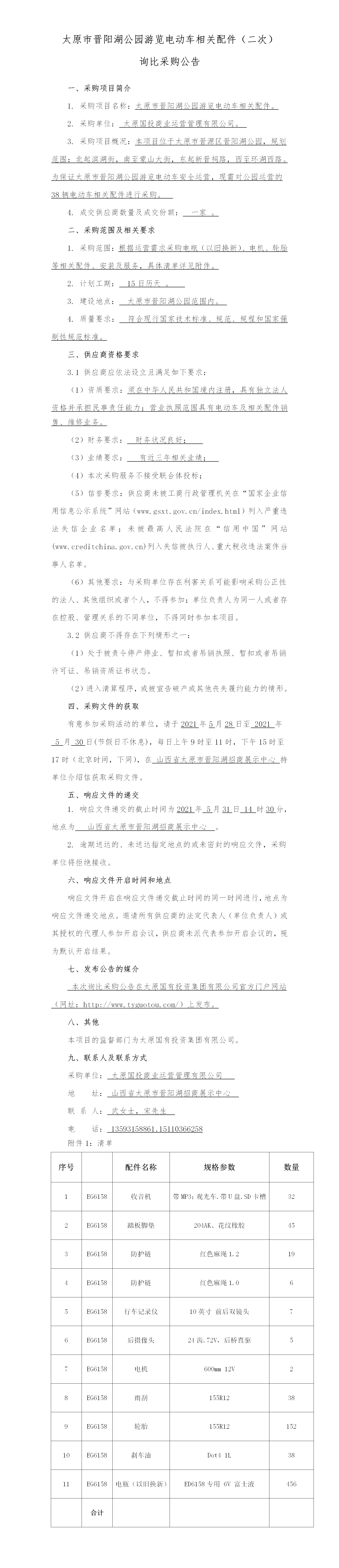 太原市晉陽(yáng)湖公園游覽電動(dòng)車相關(guān)配件詢比采購(gòu)公告