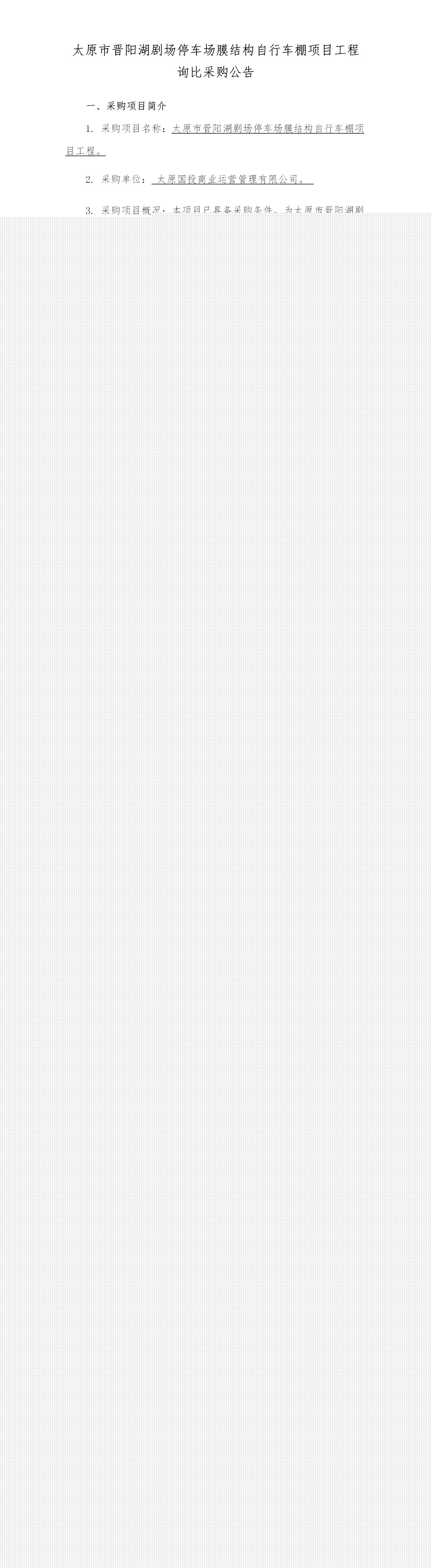 太原市晉陽湖劇場停車場膜結(jié)構(gòu)自行車棚項目工程公告