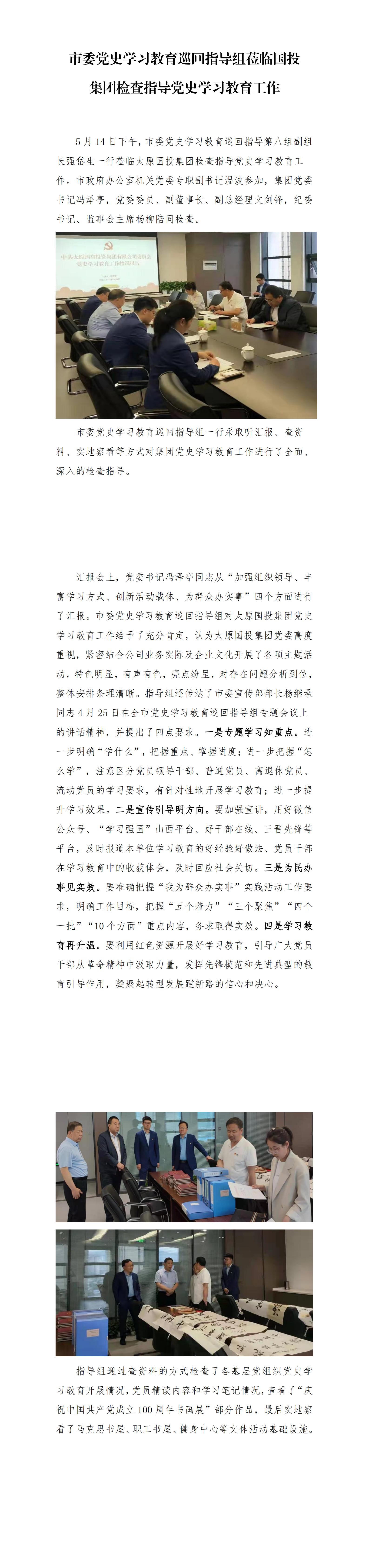 市委黨史學(xué)習(xí)教育巡回指導(dǎo)組蒞臨國投集團(tuán)檢查指導(dǎo)黨史學(xué)習(xí)教育工作
