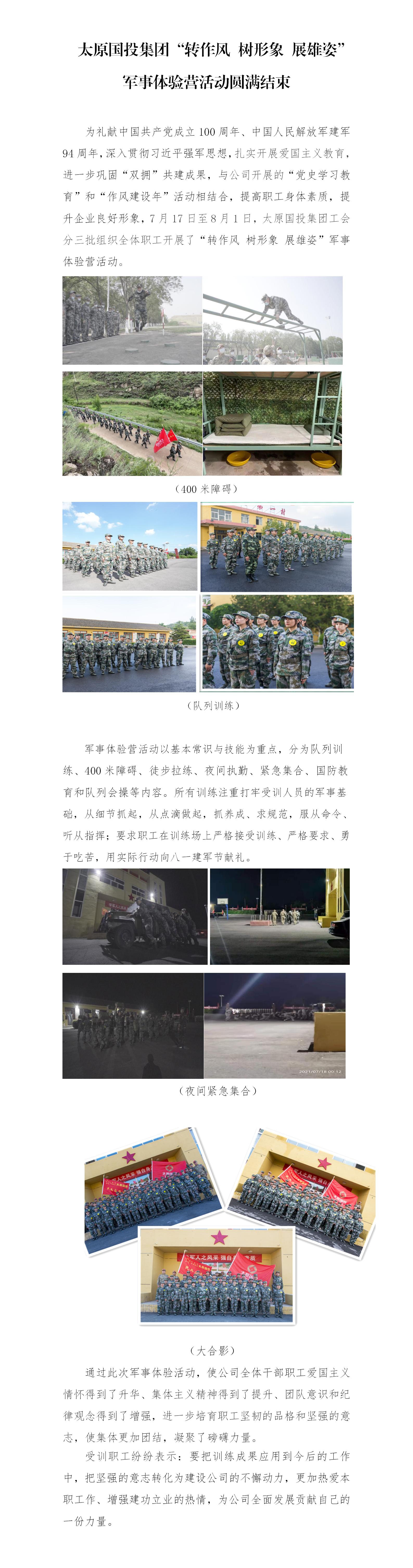 太原國投集團“轉(zhuǎn)作風 樹形象 展雄姿”軍事體驗營活動圓滿結束