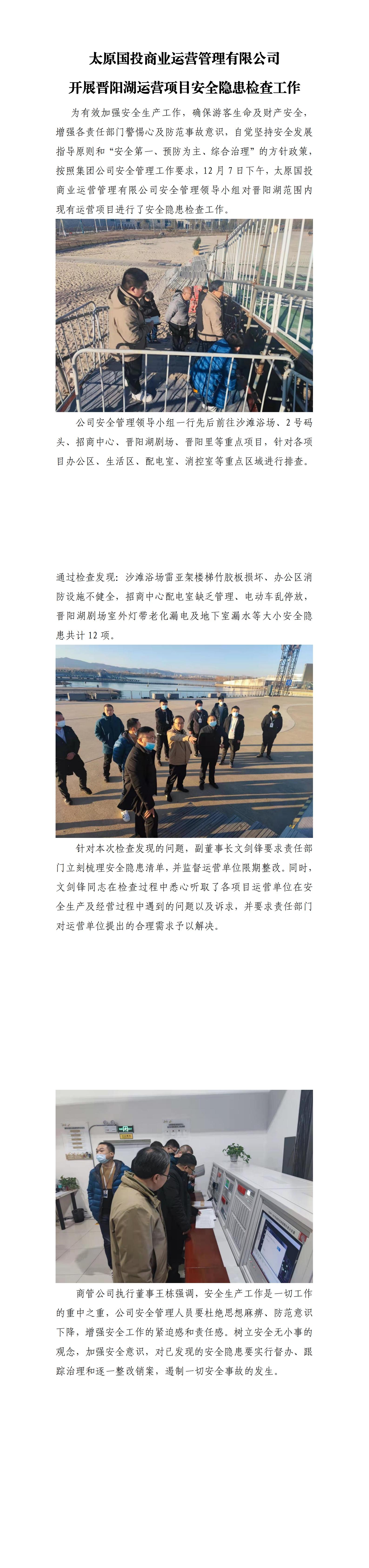 太原國(guó)投商業(yè)運(yùn)營(yíng)管理有限公司開展晉陽(yáng)湖運(yùn)營(yíng)項(xiàng)目安全隱患檢查工作