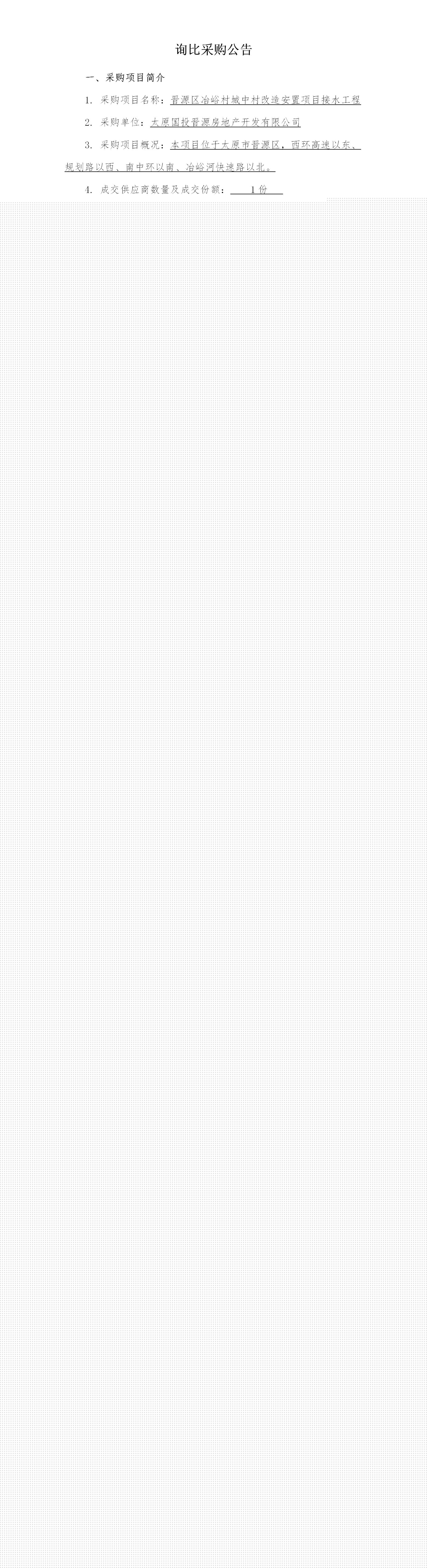 冶峪村城中村改造安置項目接水工程項目詢比公告