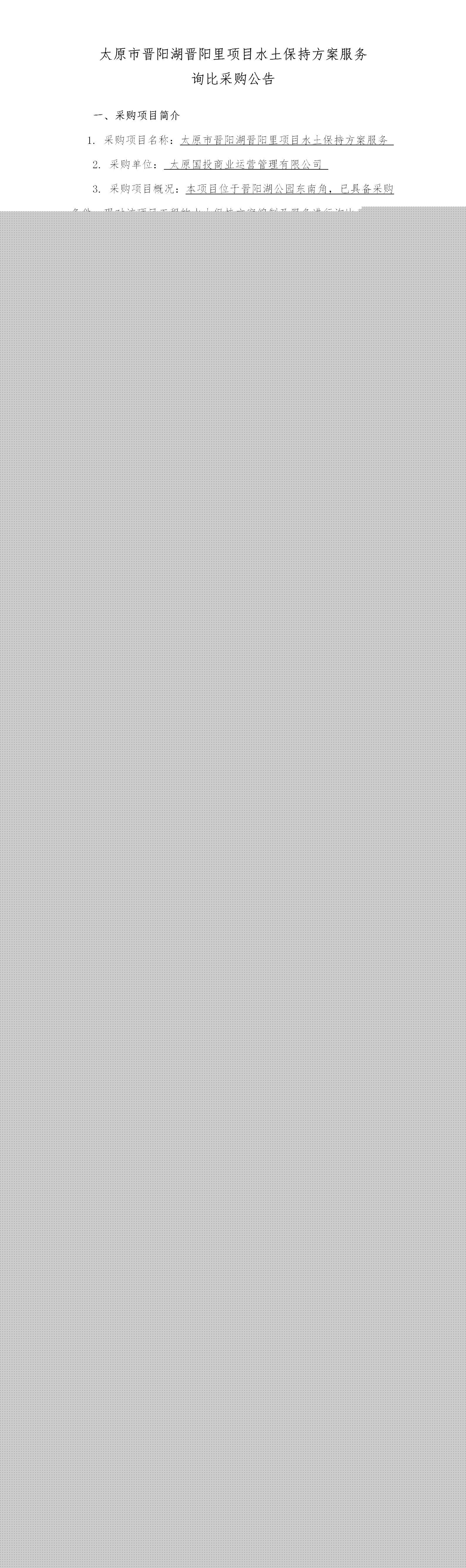 太原市晉陽湖晉陽里項目水土保持方案服務詢比采購公告