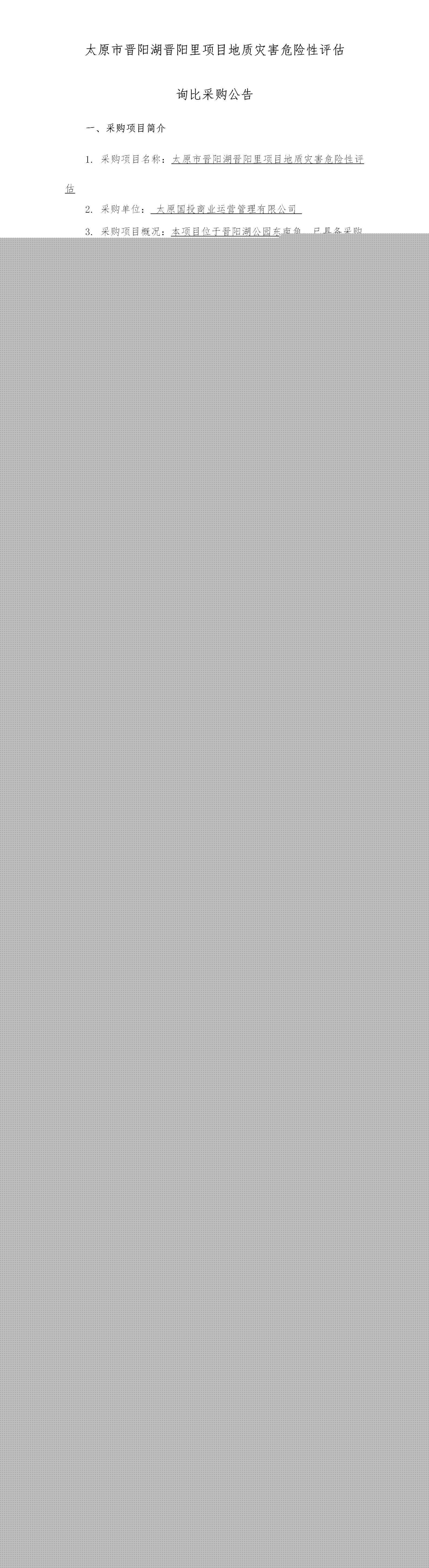 太原市晉陽湖晉陽里項目地質災害危險性評估詢價采購公告