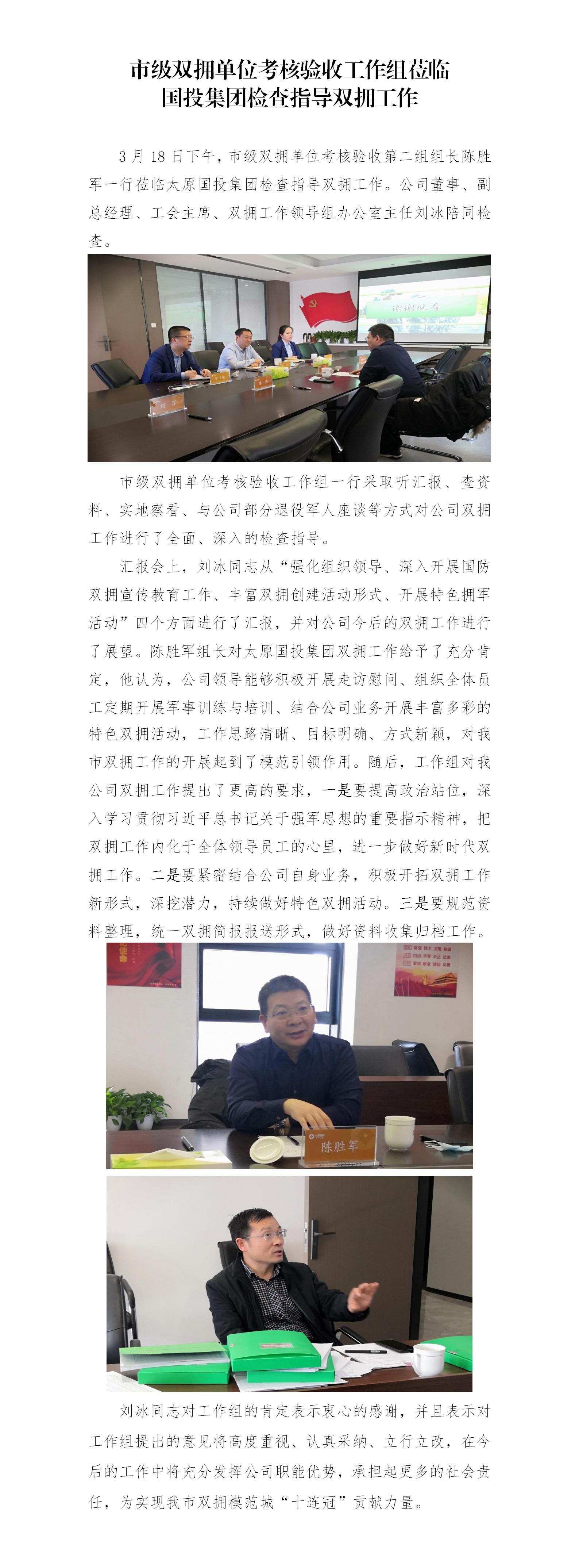 市級雙擁單位考核驗收工作組蒞臨國投集團檢查指導(dǎo)雙擁工作