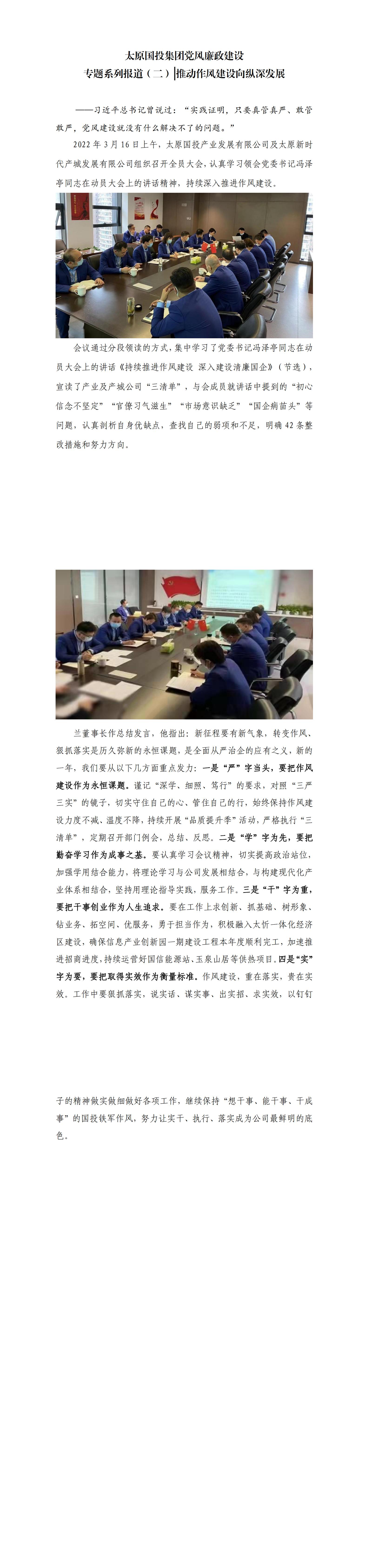 太原國投集團黨風廉政建設(shè)專題系列報道(二)推動作風建設(shè)向縱深發(fā)展