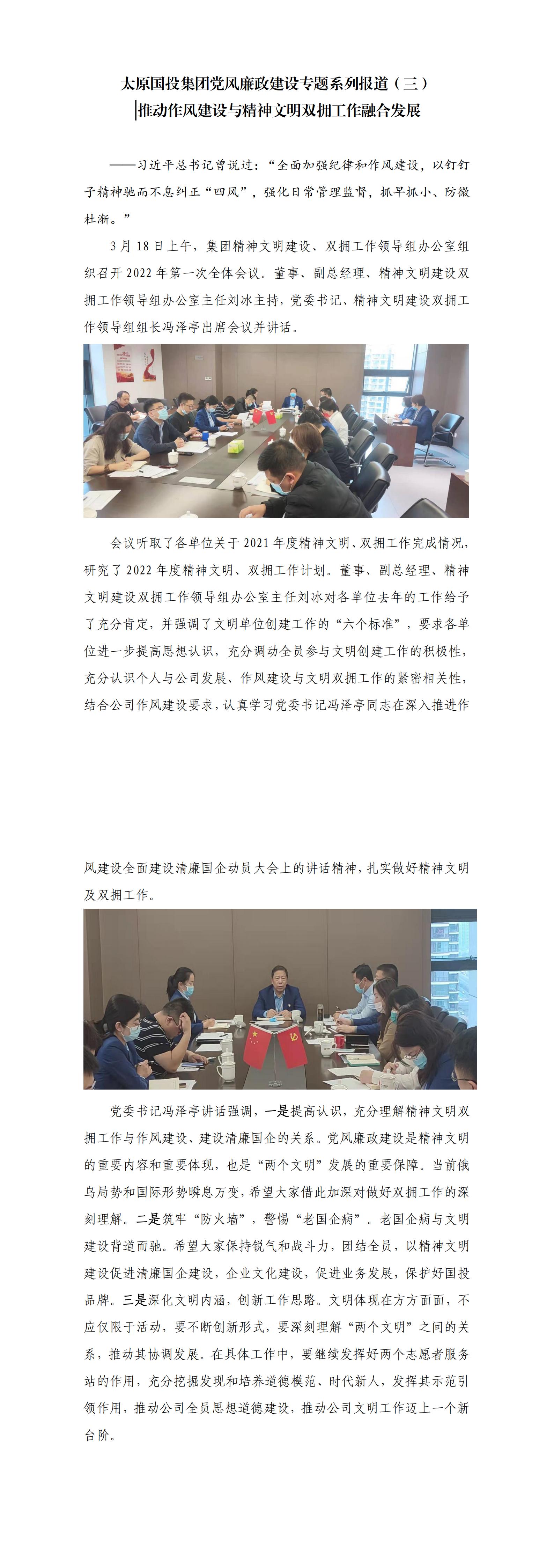 太原國(guó)投集團(tuán)黨風(fēng)廉政建設(shè)專題系列報(bào)道(三)推動(dòng)作風(fēng)建設(shè)與精神文明雙擁工作融合發(fā)展