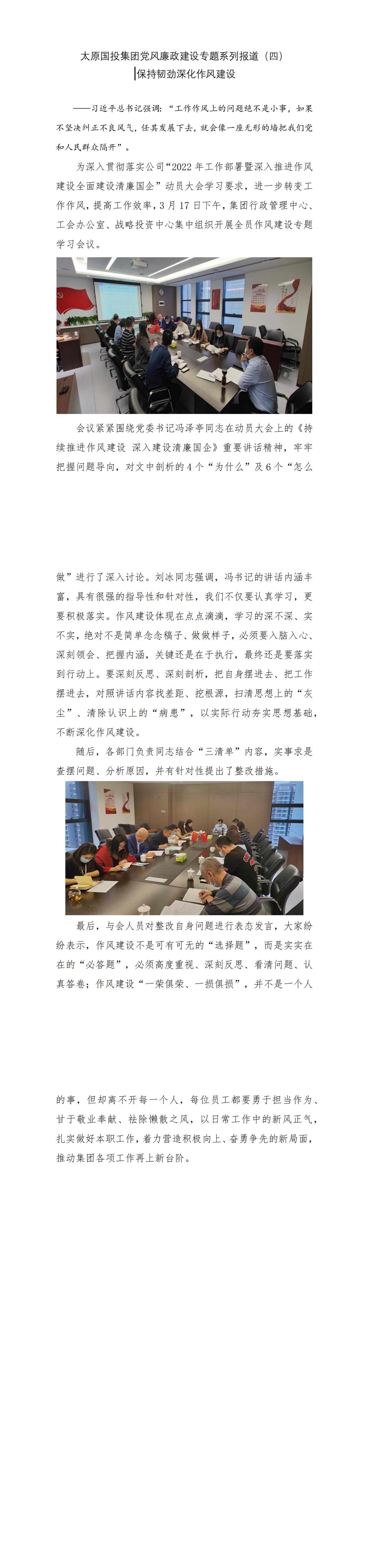 太原國投集團黨風廉政建設專題系列報道(四)保持韌勁深化作風建設