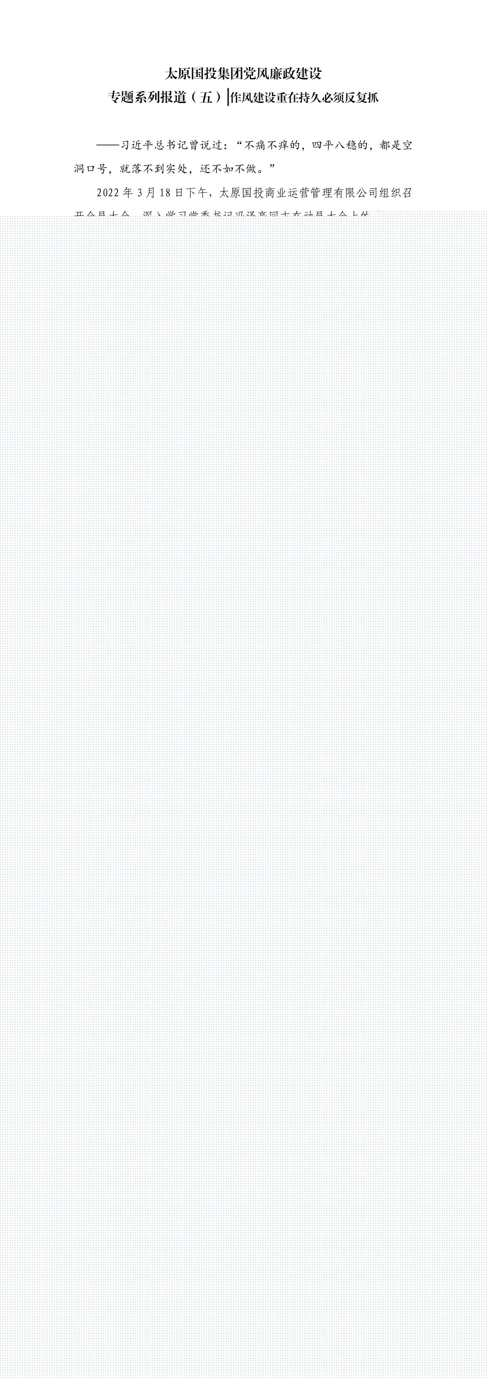 太原國(guó)投集團(tuán)黨風(fēng)廉政建設(shè)專(zhuān)題系列報(bào)道(五)作風(fēng)建設(shè)重在持久必須反復(fù)抓