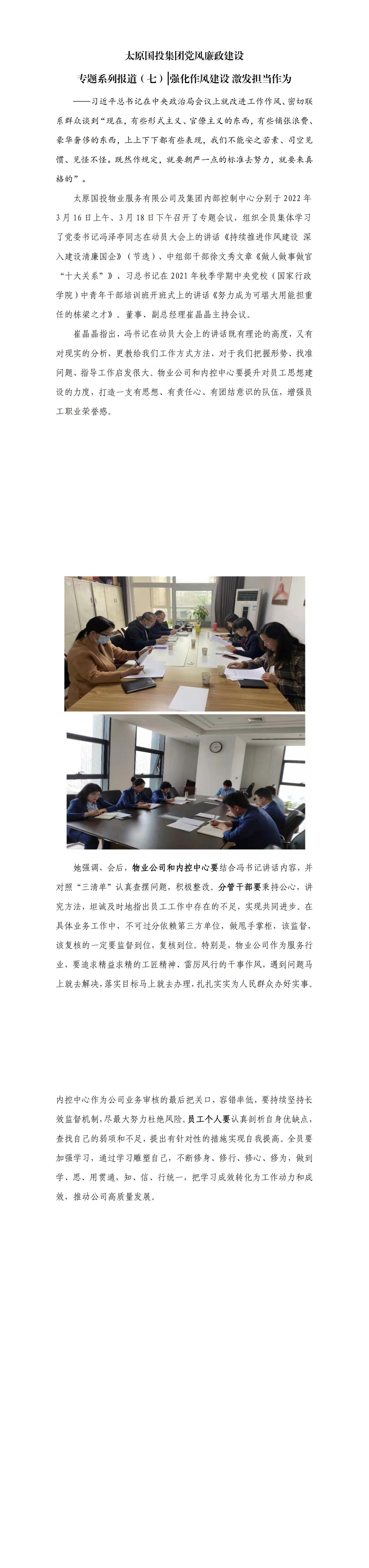 太原國投集團(tuán)黨風(fēng)廉政建設(shè)專題系列報道(七)強(qiáng)化作風(fēng)建設(shè) 激發(fā)擔(dān)當(dāng)作為