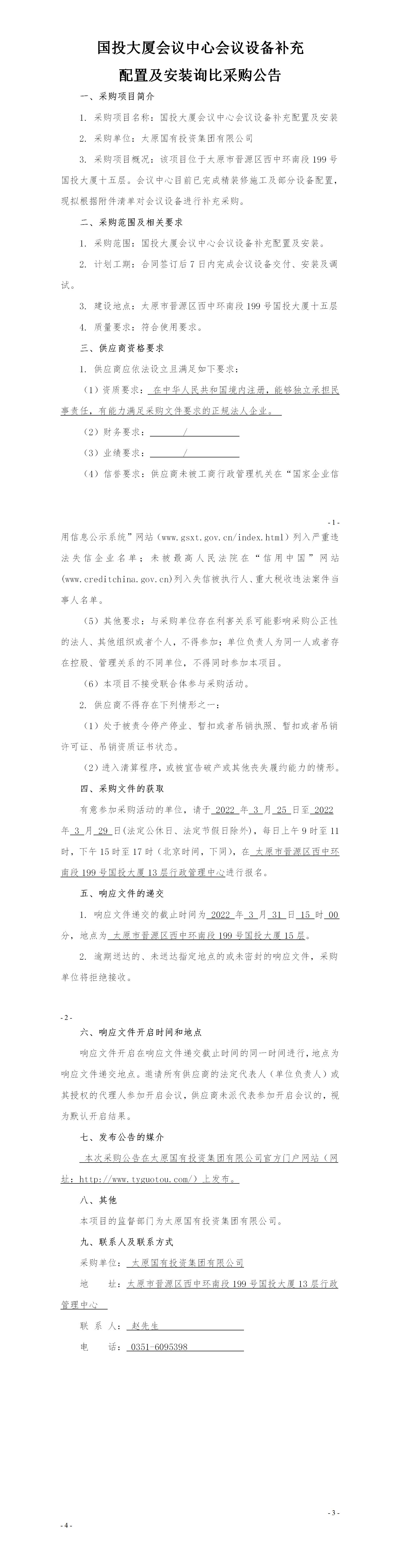 國投大廈會議中心會議設(shè)備補(bǔ)充配置及安裝詢比采購公告