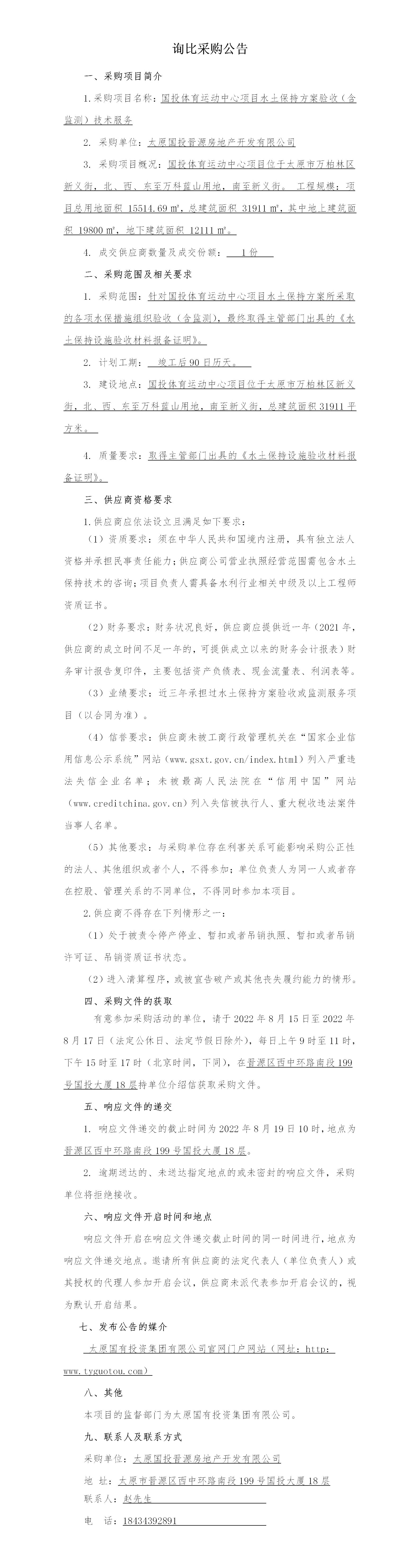 國(guó)投體育運(yùn)動(dòng)中心項(xiàng)目水土保持方案驗(yàn)收(含監(jiān)測(cè))技術(shù)服務(wù)詢(xún)比采購(gòu)公告