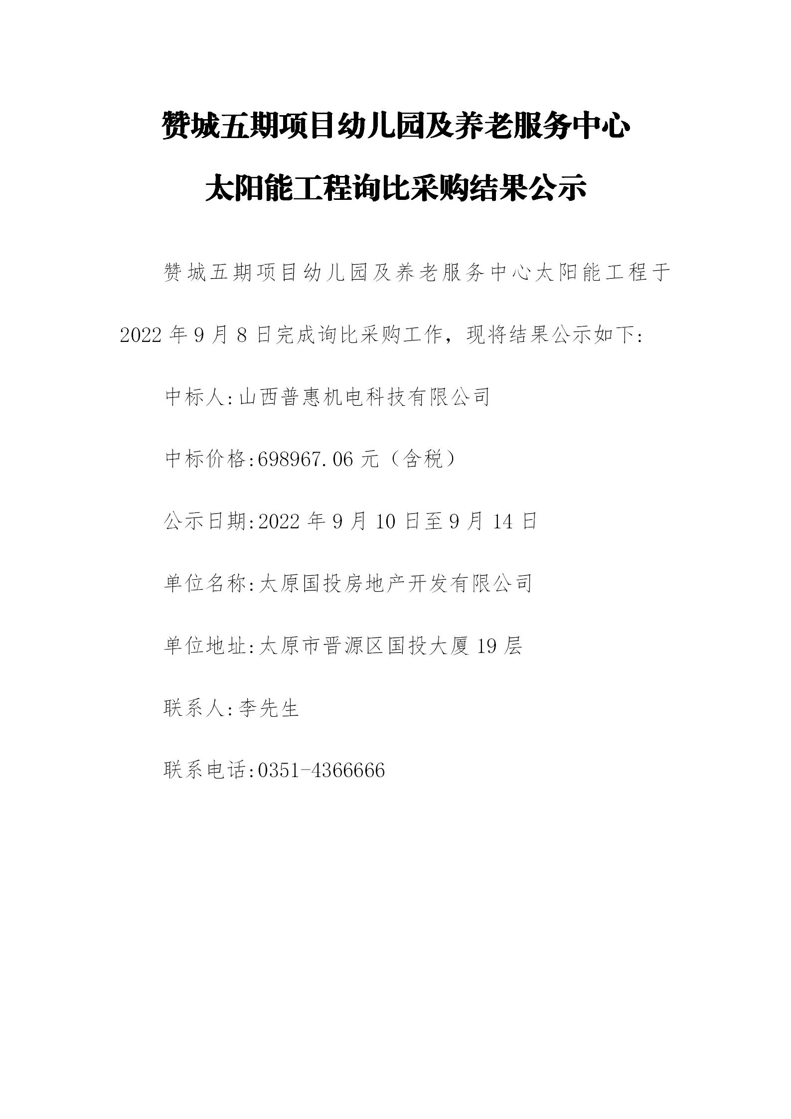 贊城五期項目幼兒園及養(yǎng)老服務中心太陽能工程詢比采購結果公示