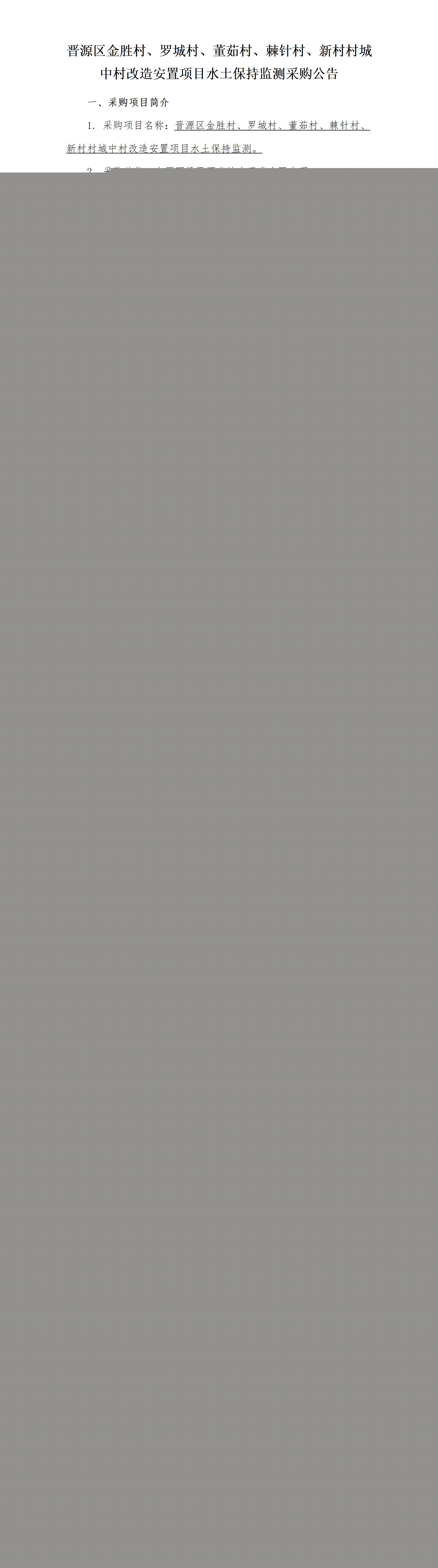 晉源區(qū)金勝村、羅城村、董茹村、棘針村、新村村城中村改造安置項目水土保持監(jiān)測詢比公告