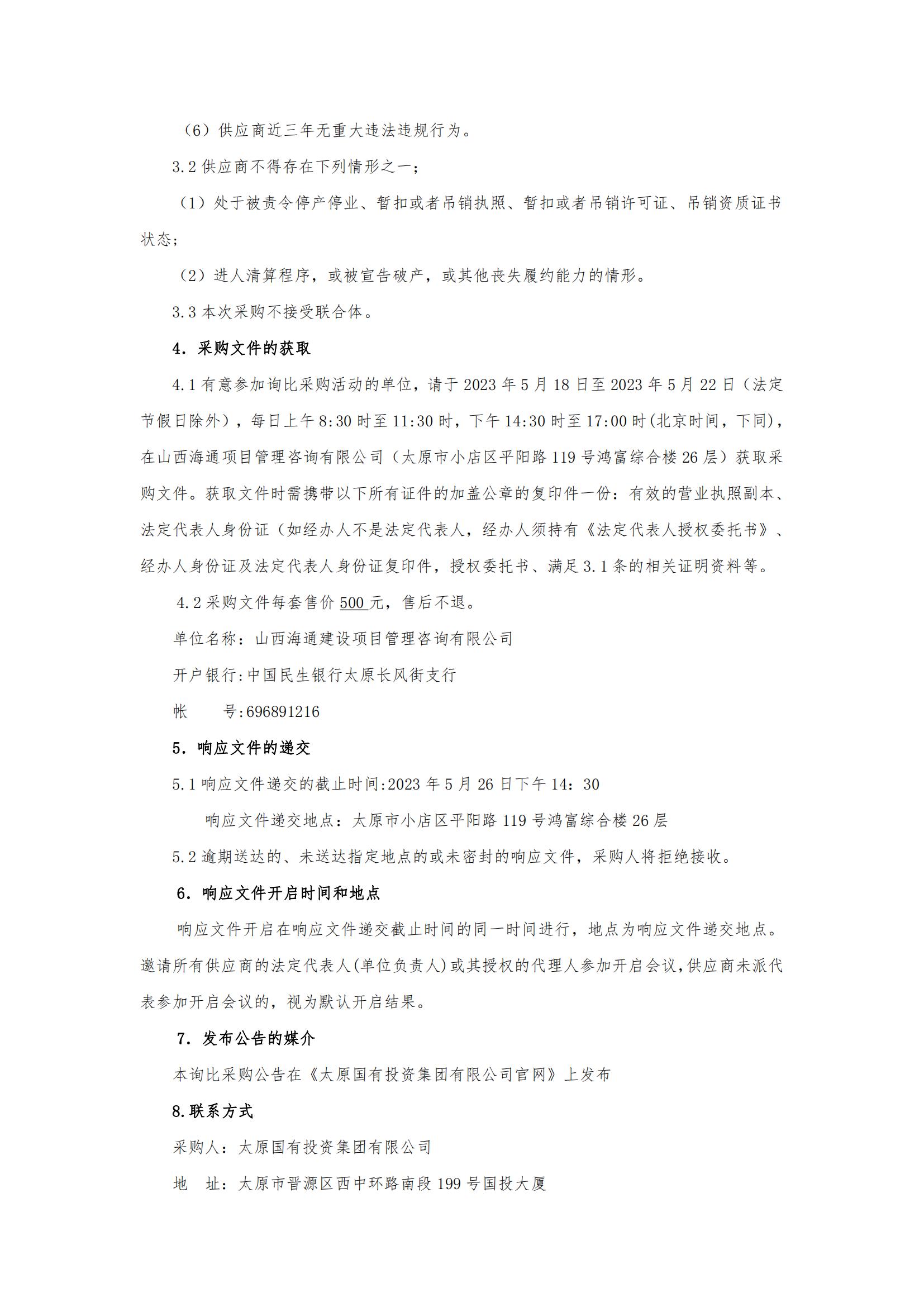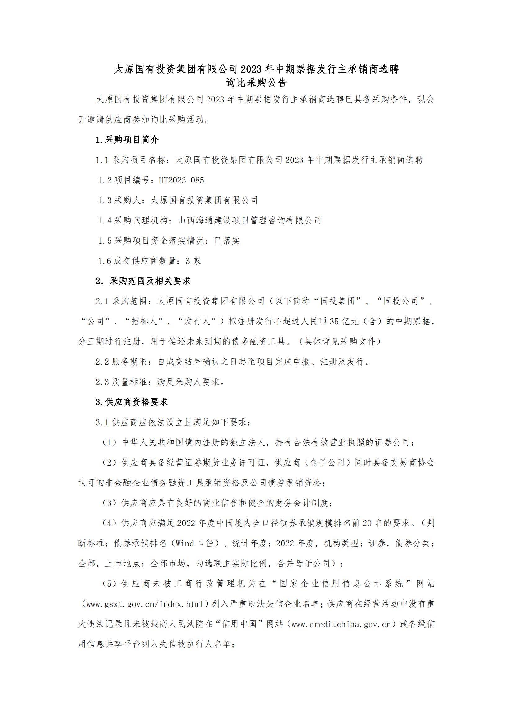 太原國有投資集團(tuán)有限公司2023年中期票據(jù)發(fā)行主承銷商選聘詢比采購公告