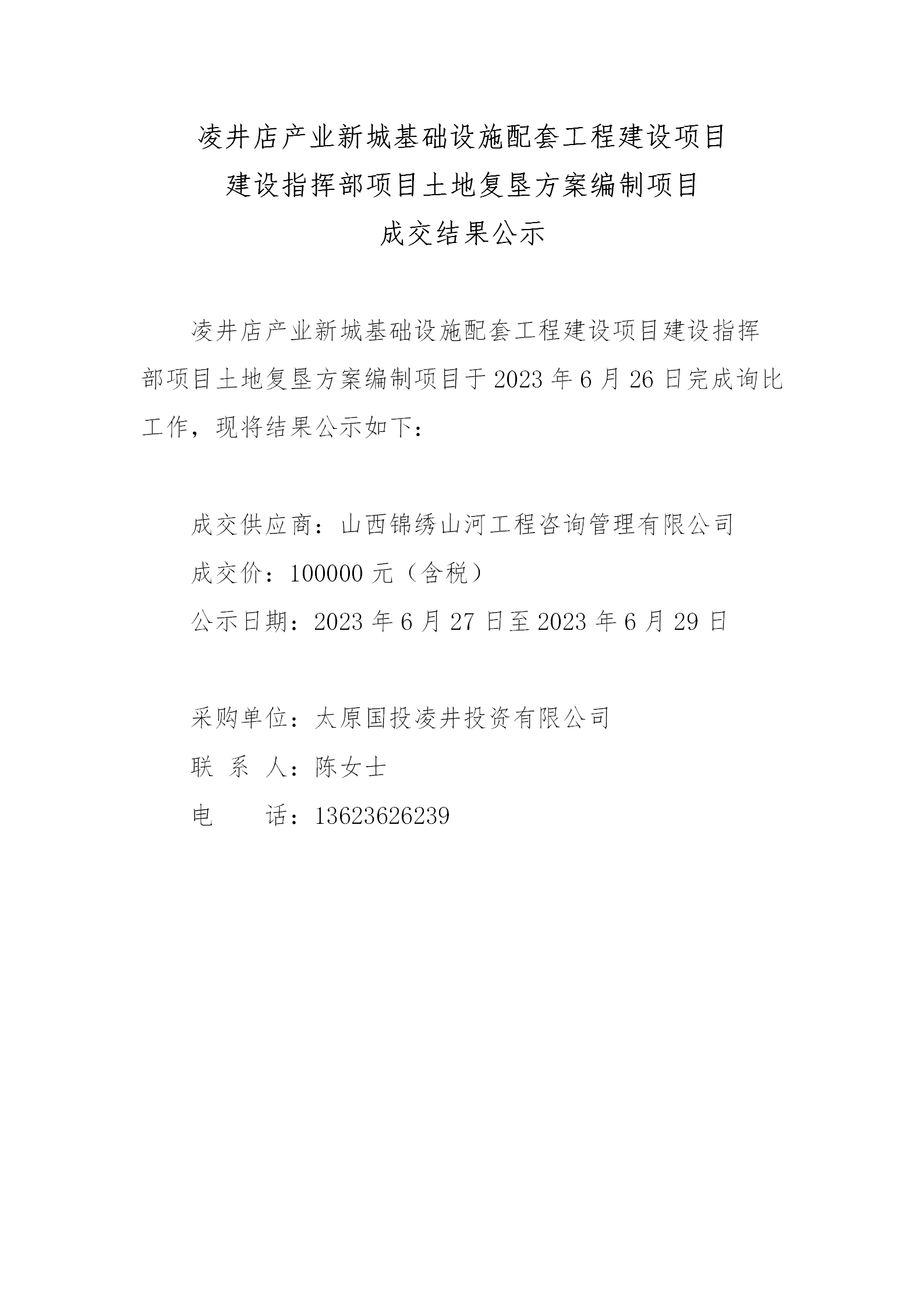 凌井店產(chǎn)業(yè)新城基礎(chǔ)設(shè)施配套工程建設(shè)項(xiàng)目建設(shè)指揮部項(xiàng)目土地復(fù)墾方案編制項(xiàng)目成交結(jié)果公示