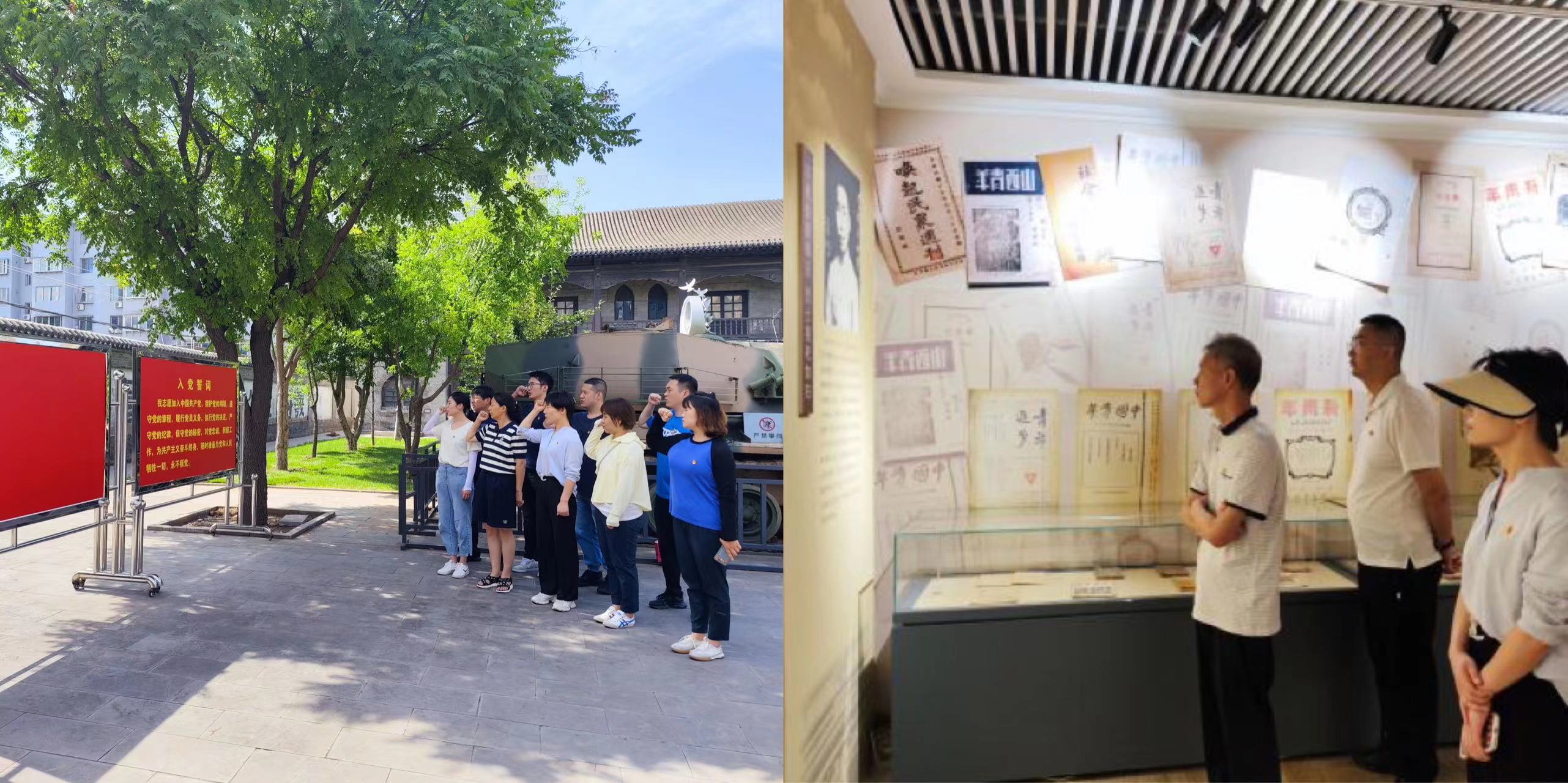 支部全體人員在拱極門集合出發(fā),先后參觀了國民師范舊址、八路軍駐晉辦事處舊址紀(jì)念館和犧盟會(huì)太原市委舊址,全程徒步約3公里。“我志愿加入中國共產(chǎn)黨,擁護(hù)黨的綱領(lǐng),遵守黨的章程...隨時(shí)為黨和人民犧牲一切,永不叛黨!”大家在黨旗前莊嚴(yán)宣誓,時(shí)刻提醒自己要永葆對(duì)黨忠誠的政治品格,要時(shí)刻堅(jiān)守忠誠的政治底色,踐初心、勇?lián)?dāng)、強(qiáng)作為。“團(tuán)結(jié)就是力量,團(tuán)結(jié)就是力量,這力量是鐵、這力量是鋼...” 紅歌鏗鏘有力,催人振奮。大家在兩個(gè)領(lǐng)唱員帶領(lǐng)下在革命舊址唱紅歌集體重溫革命傳統(tǒng),復(fù)習(xí)紅色文化,為黨的生日獻(xiàn)禮。打卡紅色基地,重溫紅色歷史、緬懷革命先烈,通過一幅幅珍貴的歷史照片、一件件珍貴的抗戰(zhàn)文物,再現(xiàn)老一輩無產(chǎn)階級(jí)革命家的英雄事跡和豐功偉績。