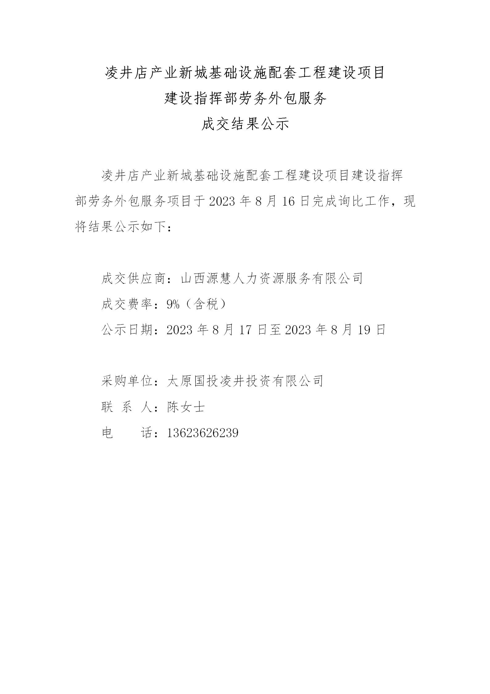 凌井店產(chǎn)業(yè)新城基礎(chǔ)設(shè)施配套工程建設(shè)項(xiàng)目建設(shè)指揮部勞務(wù)外包服務(wù)成交結(jié)果公示