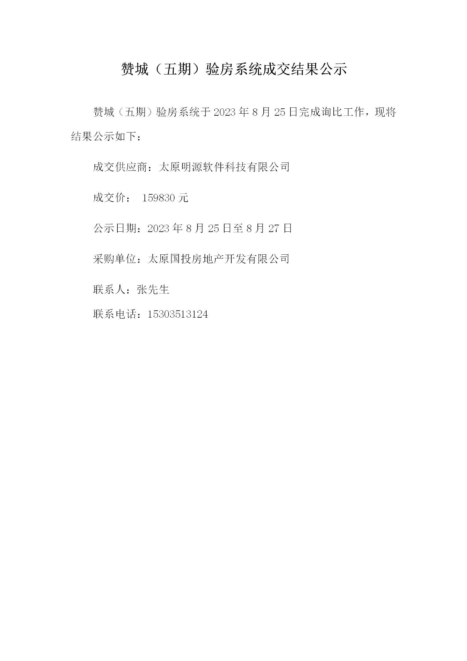 贊城(五期)驗(yàn)房系統(tǒng)成交結(jié)果公示