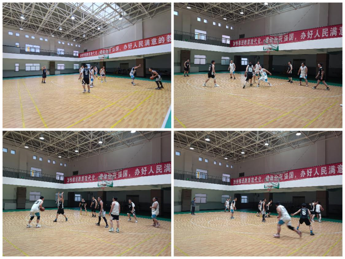 兩支球隊的精兵強將嚴陣以待,一個個目光如炬。賽場上,兩支隊伍身著統(tǒng)一隊服,斗志昂揚,一張張激情飽滿的笑臉、一個個矯健豪邁的英姿,帶著敢于拼搏的精神、敢于挑戰(zhàn)的熱情,前進著、奔跑著。只見他們身姿矯健,搶球、傳球、接球、起跳、投籃……全力以赴的競技精神、高漲的情緒,使得比賽異常激烈。