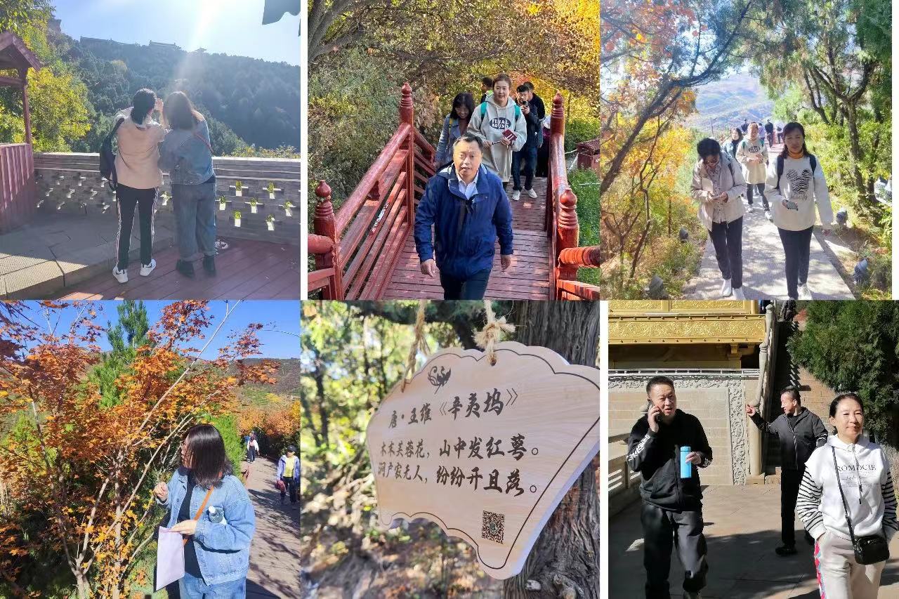 上午9點(diǎn)集合完畢后,大家開(kāi)始沿著預(yù)定路線登山,置身于壯麗的自然景色中,一路上三兩成群結(jié)伴而行,神采奕奕,邁著穩(wěn)健的步伐,沿山路而上,每片金葉都滲透著秋的色彩、秋得味道,讓人心曠神怡。登山過(guò)程中,大家情緒高昂,歡聲笑語(yǔ),有人忙著拍照留影,有人則撿拾了不同顏色的葉子,想做成手工畫(huà)送給家里的老人。經(jīng)過(guò)1小時(shí)的徒步,大家順利登上山頂,站在山頂,一覽眾山小,風(fēng)景無(wú)限好。大家呼吸著新鮮的空氣,欣賞著宜人的風(fēng)光,渾身的疲憊和心中的壓力瞬間都煙消云散。