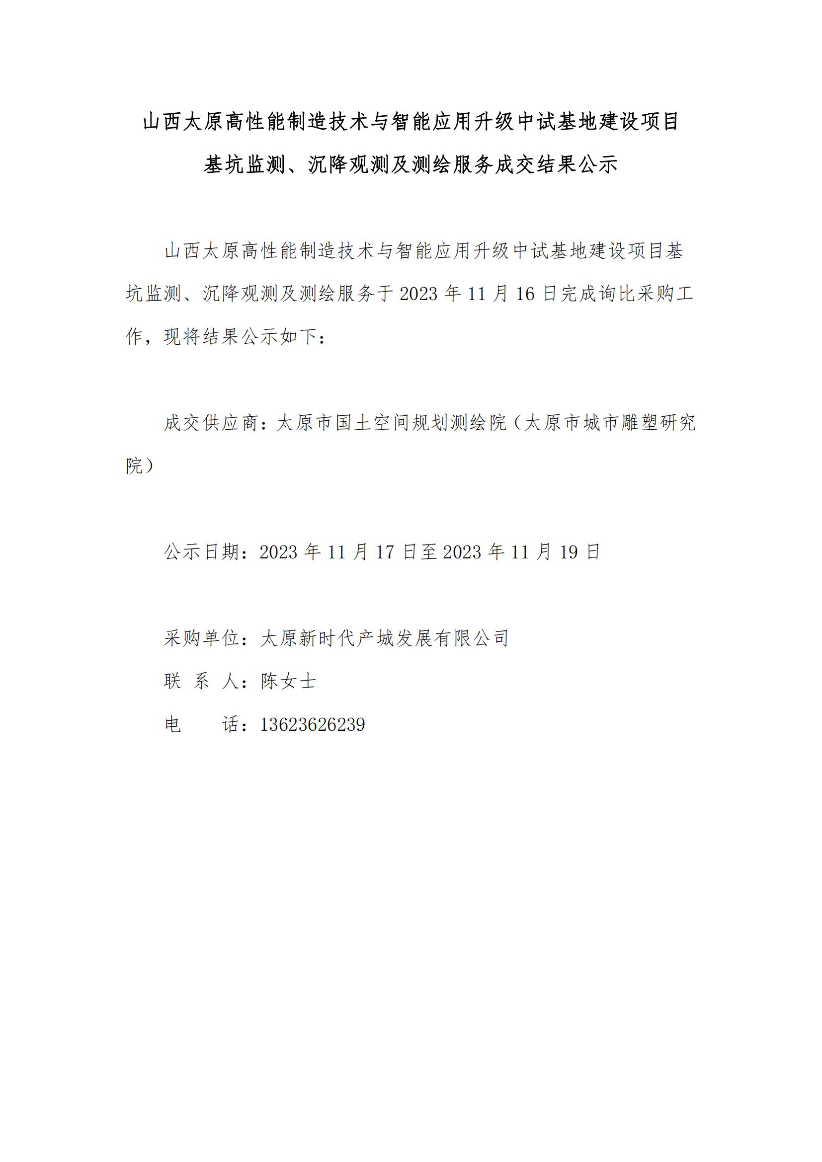 山西太原高性能制造技術(shù)與智能應(yīng)用升級(jí)中試基地建設(shè)項(xiàng)目 基坑監(jiān)測(cè)、沉降觀測(cè)及測(cè)繪服務(wù)成交結(jié)果公示
