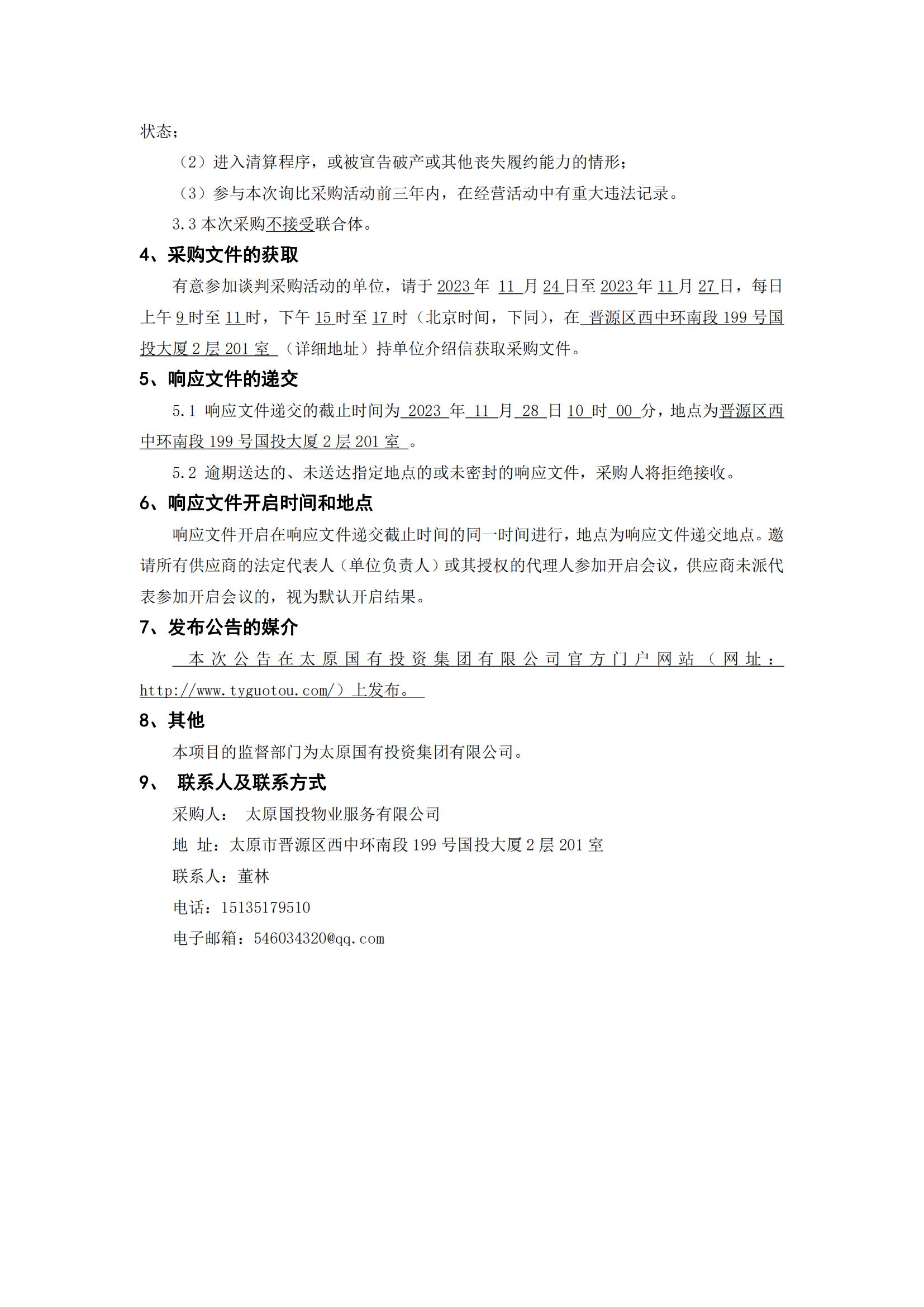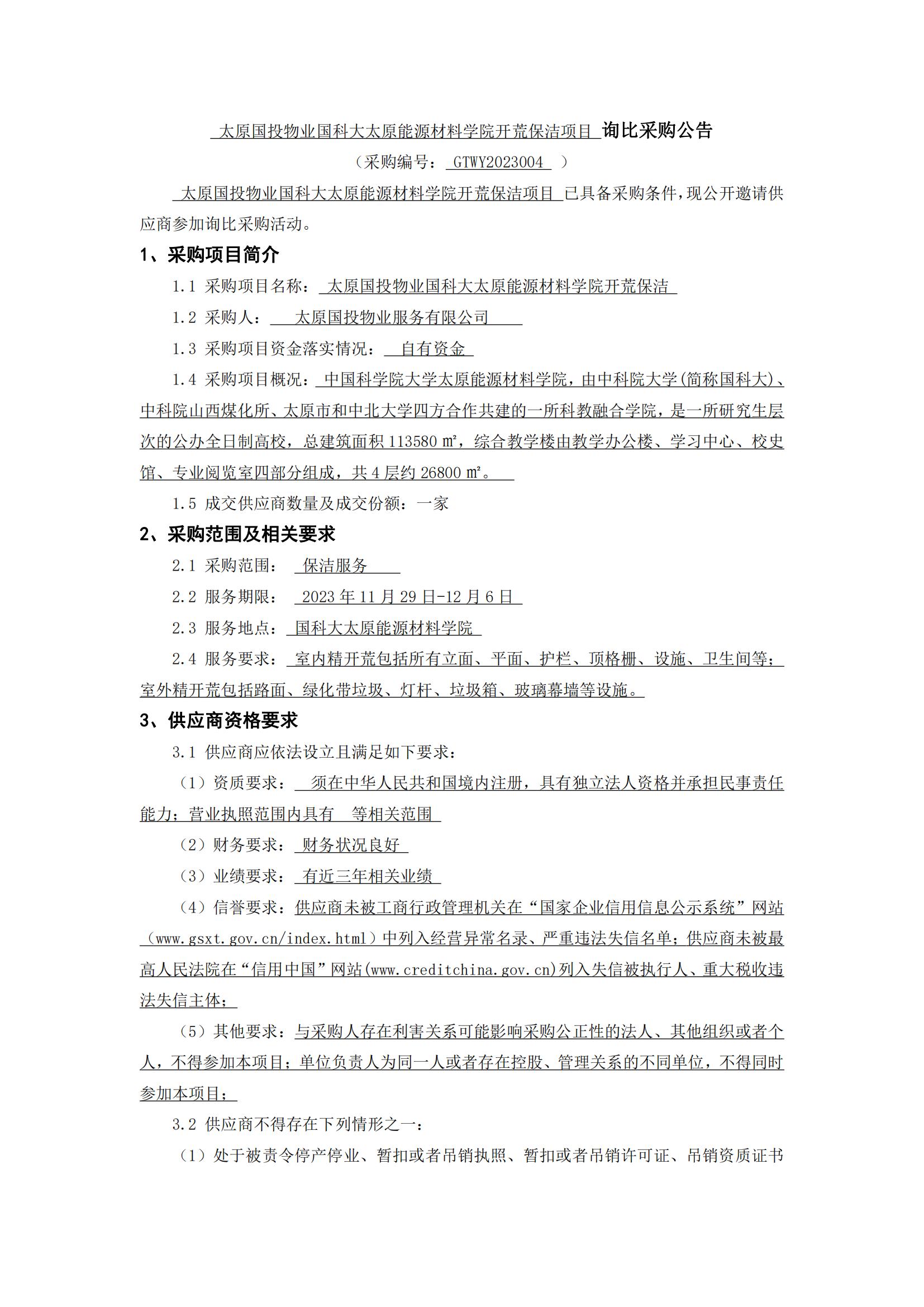 太原國投物業(yè)國科大太原能源材料學院開荒保潔項目詢比采購公告