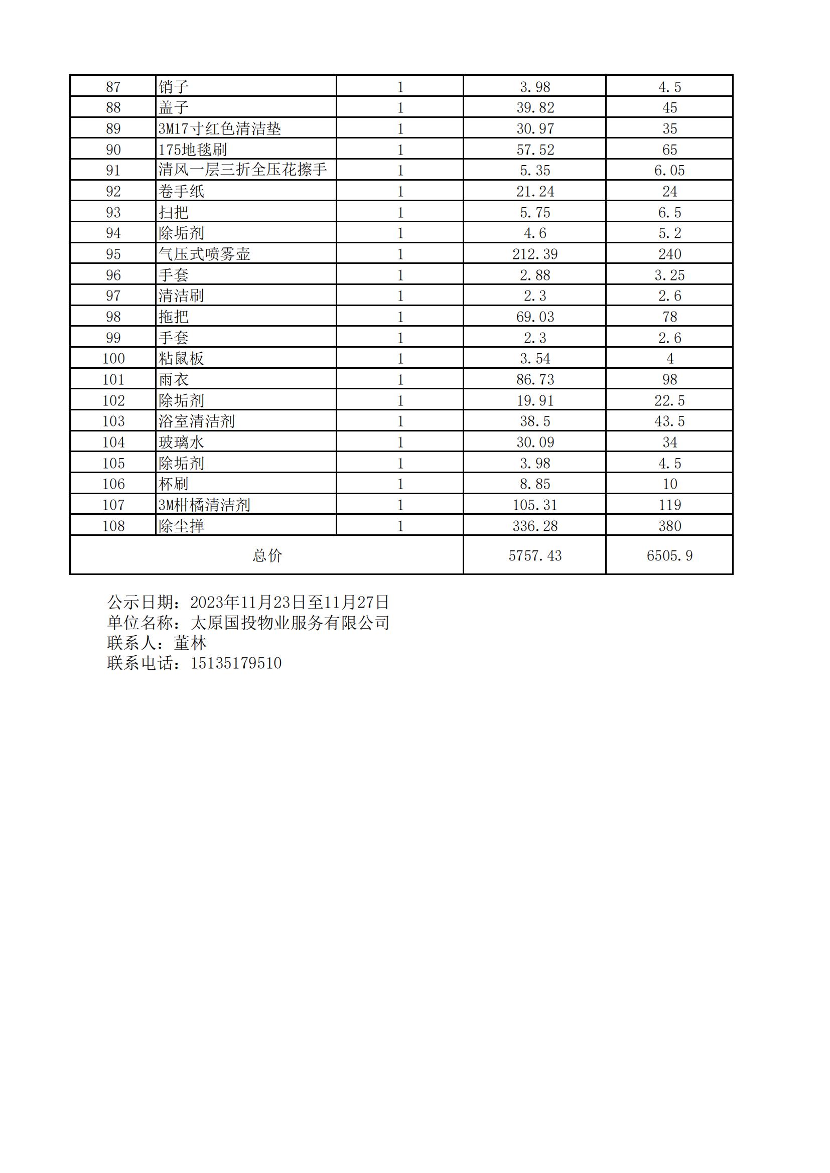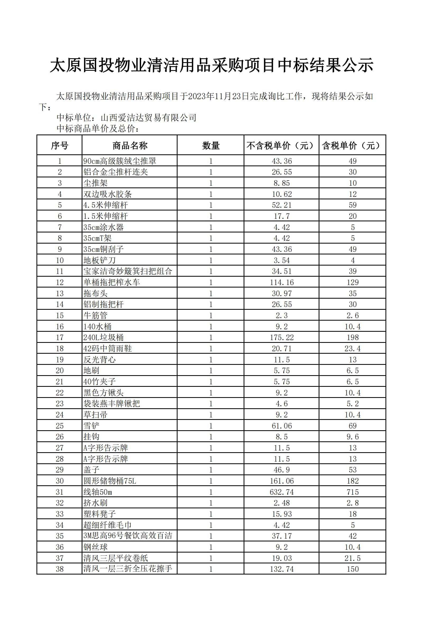 太原國投物業(yè)清潔用品采購項(xiàng)目中標(biāo)結(jié)果公示
