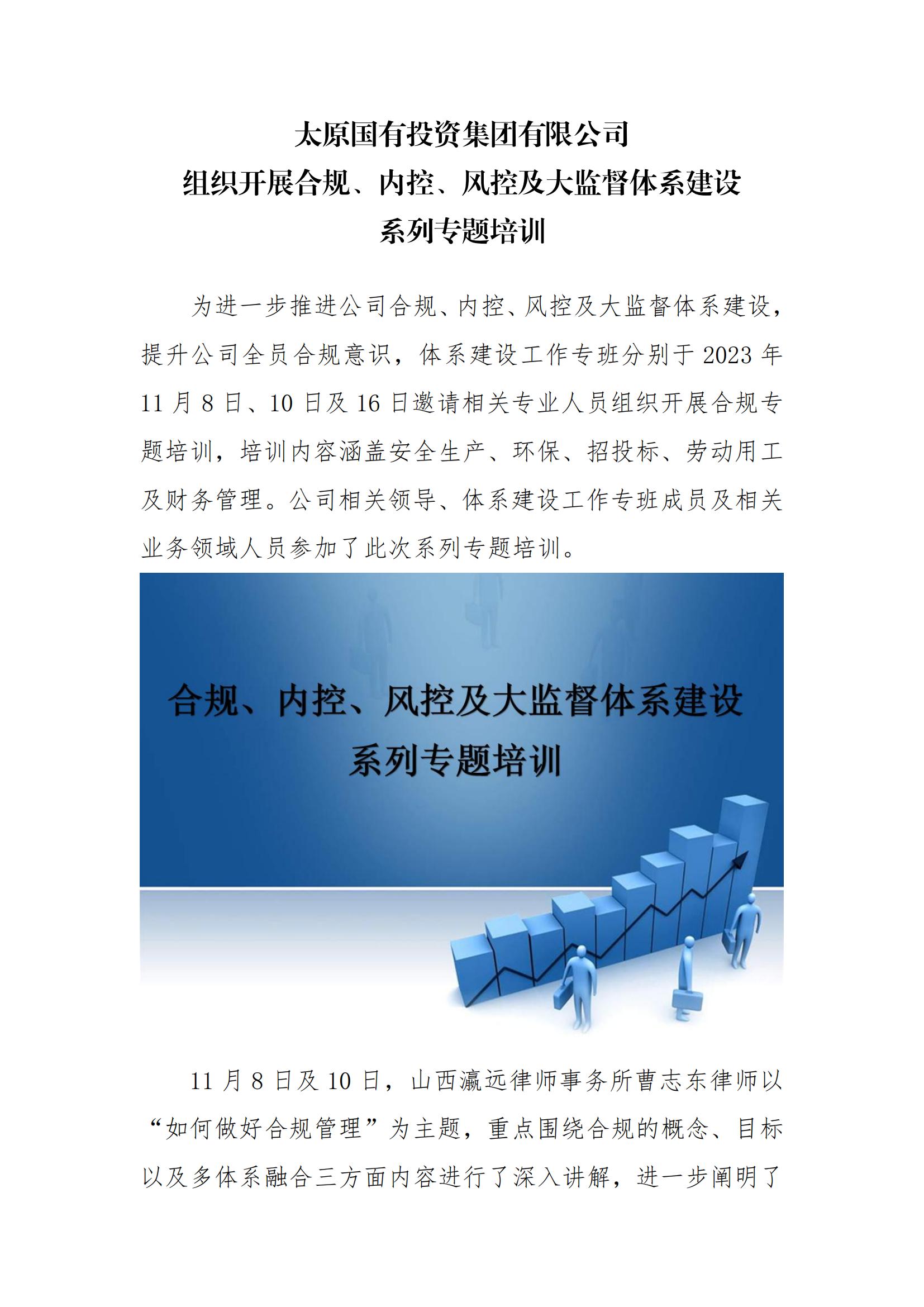 太原國(guó)有投資集團(tuán)有限公司組織開展合規(guī)、內(nèi)控、風(fēng)控及大監(jiān)督體系建設(shè)系列專題培訓(xùn)