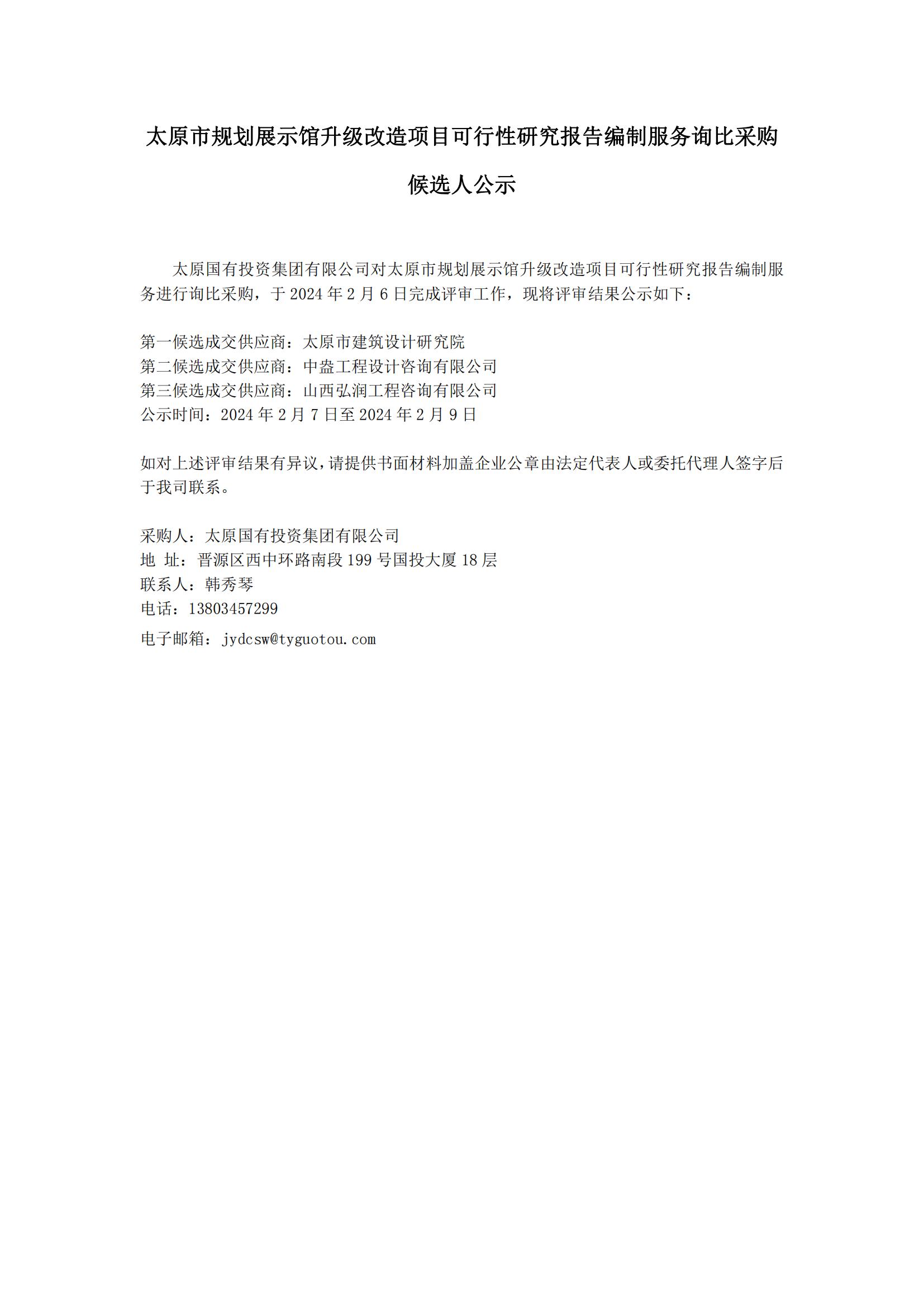 太原市規(guī)劃展示館升級(jí)改造項(xiàng)目可行性研究報(bào)告編制服務(wù)成交候選人公示