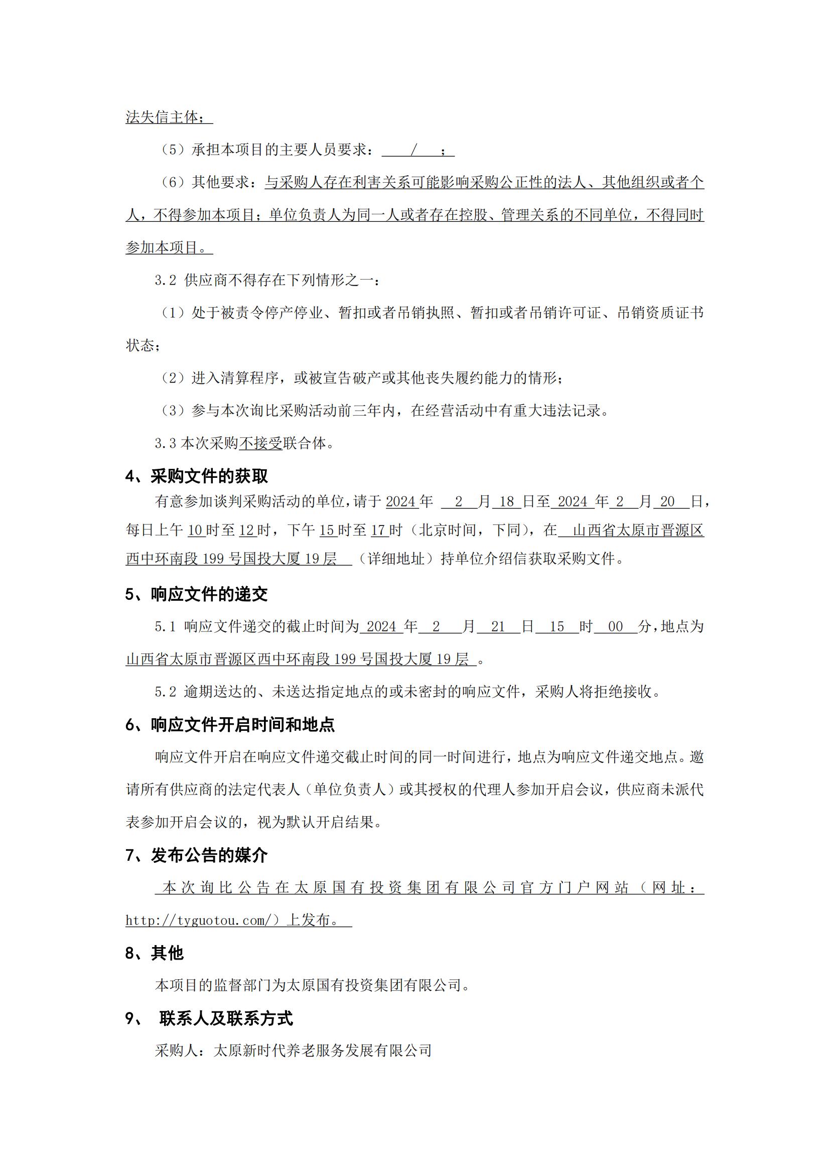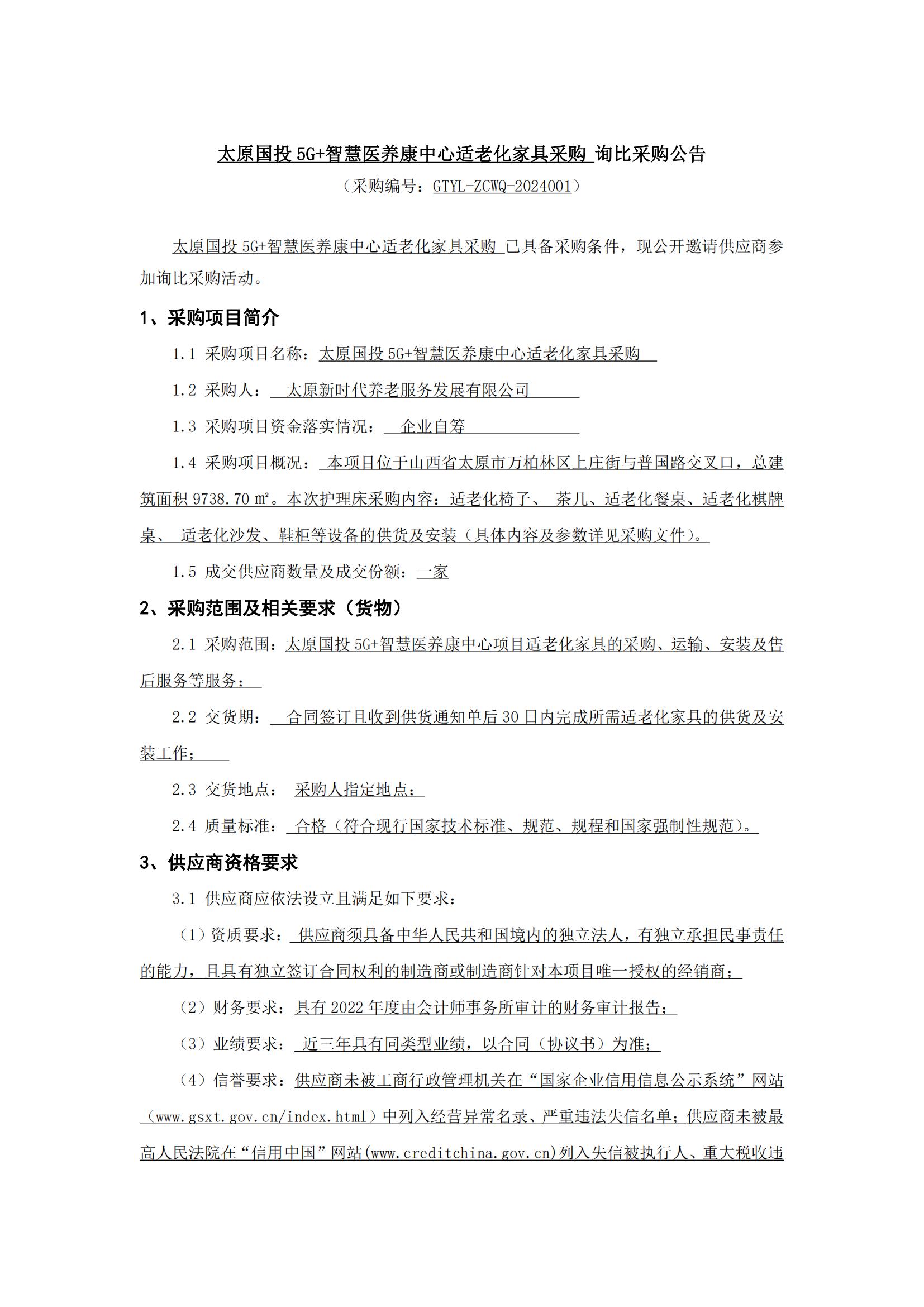 太原國投5G+智慧醫(yī)養(yǎng)康中心適老化家具采購 詢比采購公告