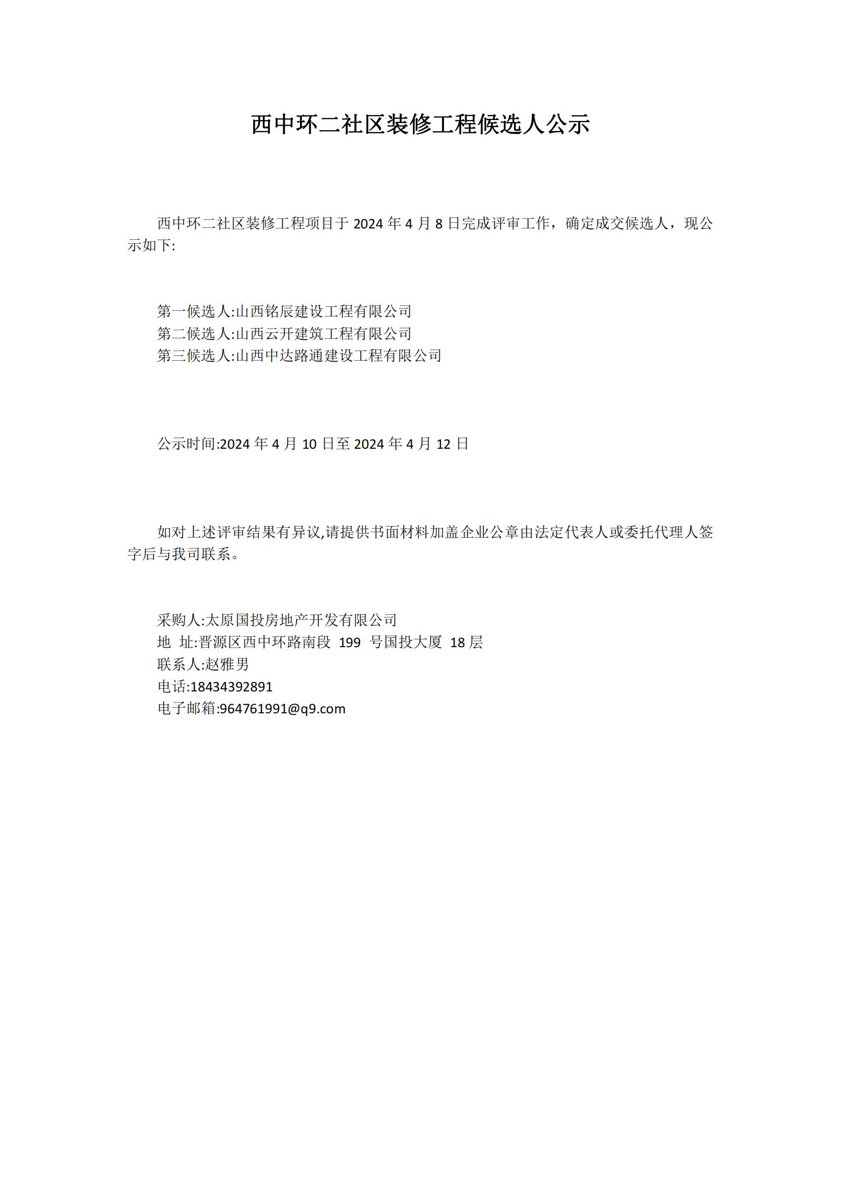 西中環(huán)二社區(qū)裝修工程候選人公示