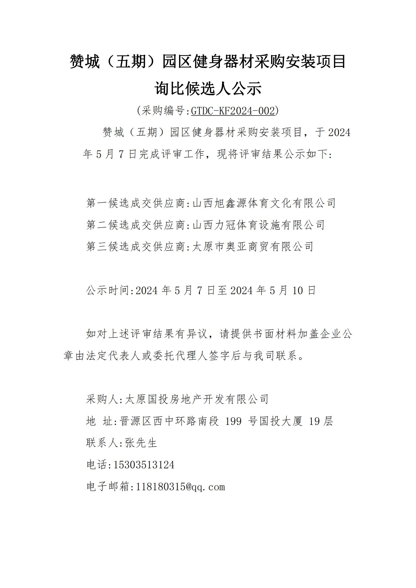 贊城(五期)園區(qū)健身器材采購安裝 詢比采購結(jié)果公示