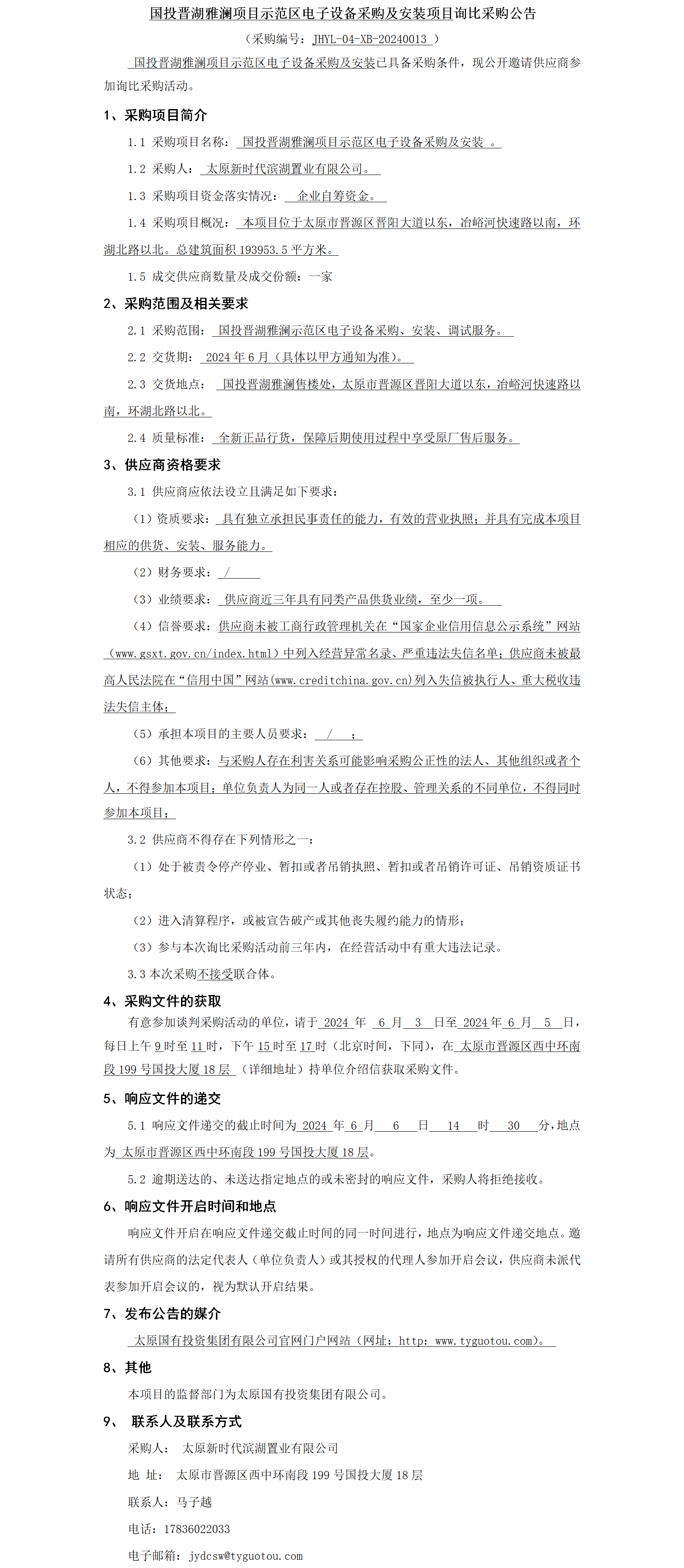 國(guó)投晉湖雅瀾項(xiàng)目示范區(qū)電子設(shè)備采購(gòu)及安裝項(xiàng)目詢比采購(gòu)公告