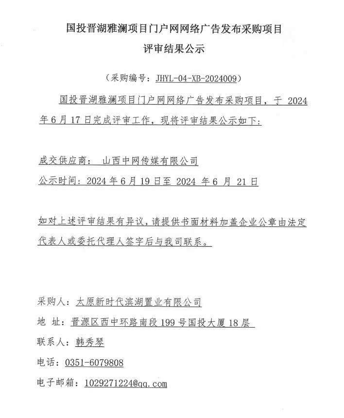 晉湖雅瀾項(xiàng)目門戶網(wǎng)網(wǎng)絡(luò)廣告發(fā)布采購項(xiàng)目結(jié)果公示