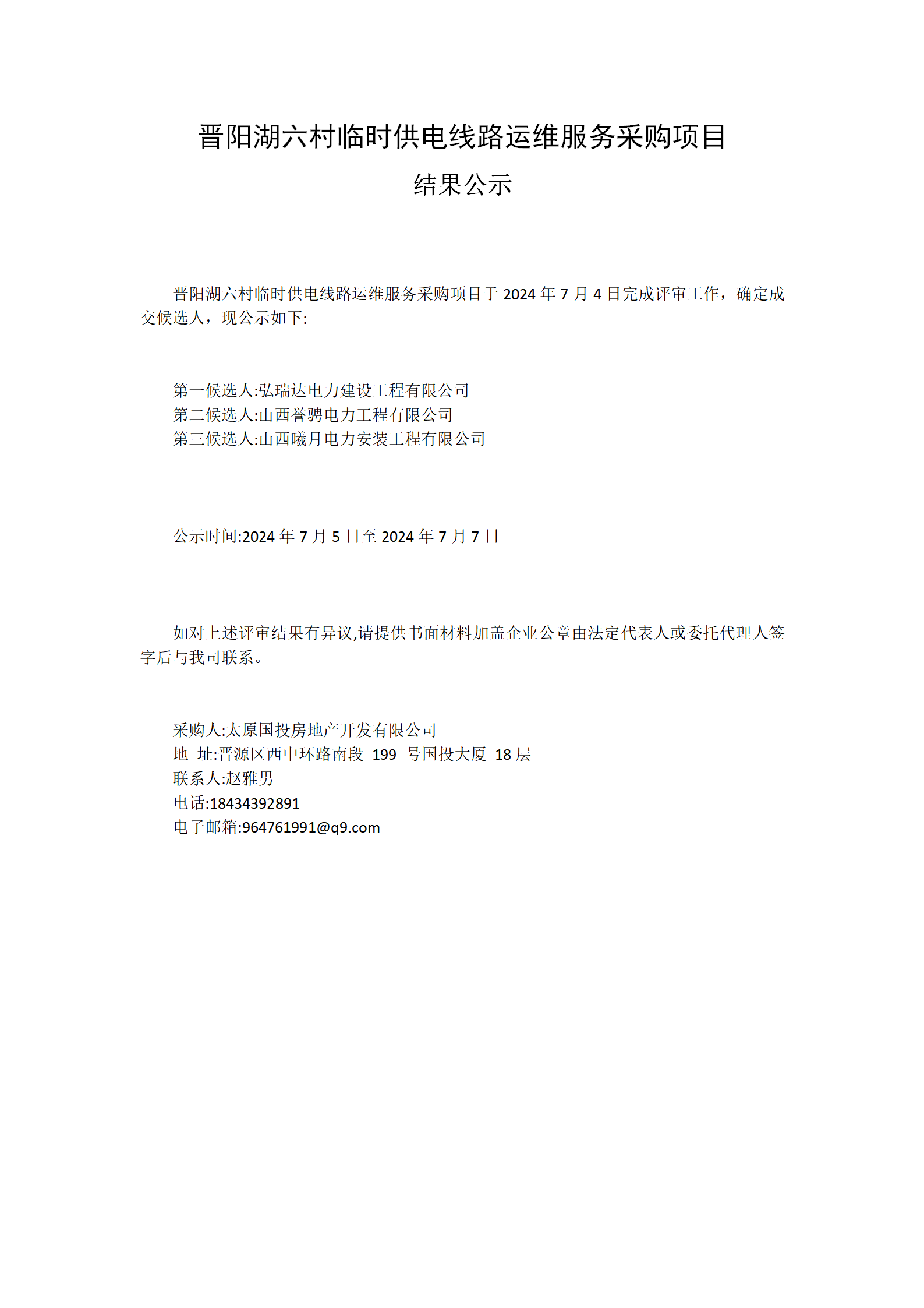 晉陽湖六村臨時供電線路運維服務(wù)采購項目結(jié)果公示