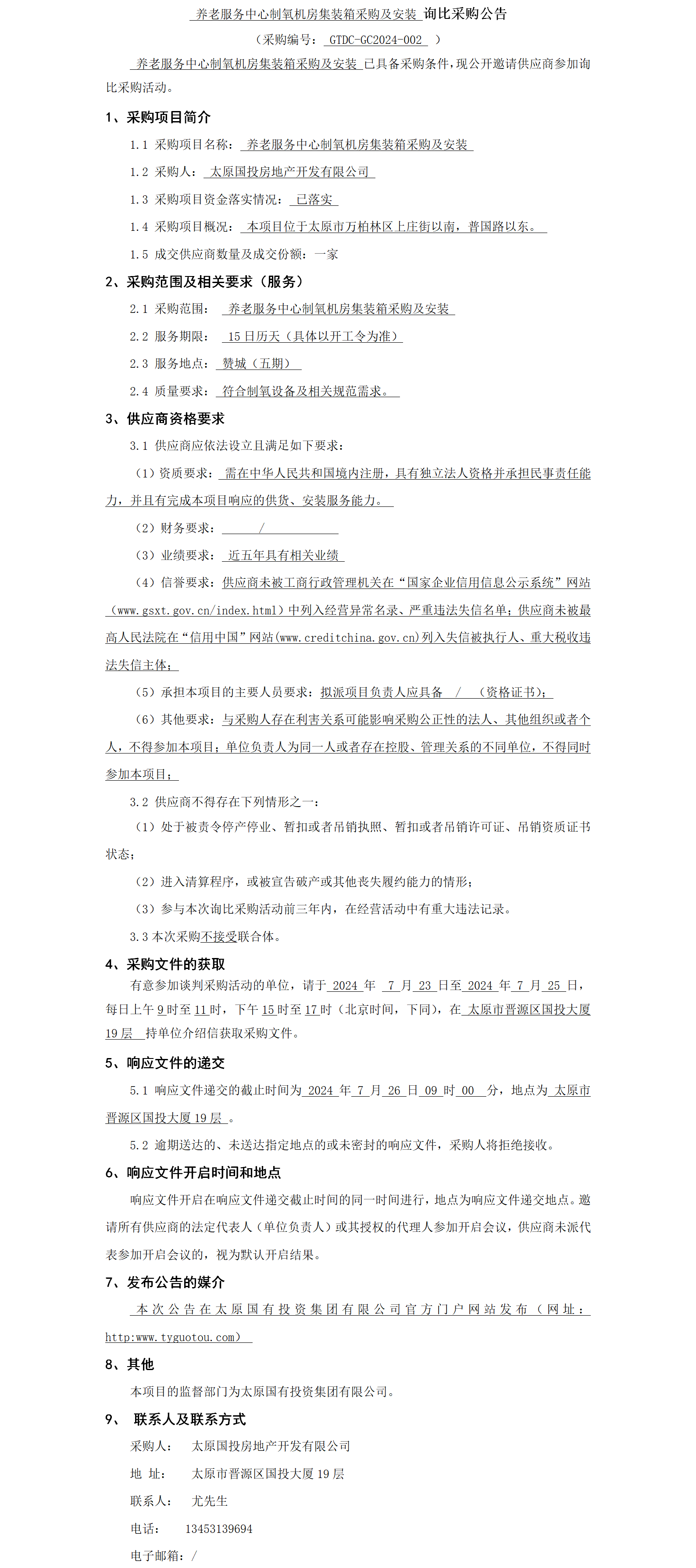 養(yǎng)老服務(wù)中心制氧機(jī)房集裝箱采購及安裝詢比采購公告