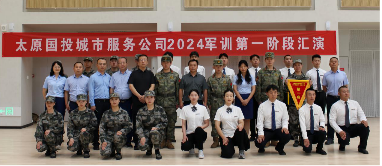 近日,太原國投城市服務有限公司(以下簡稱“太原國投城市服務”)2024軍訓第一階段匯演在國科大體育館舉行?;顒赢斕?,集團董事、副總經理、工會主席劉冰、集團相關部門與太原國投城市服務負責人出席。
