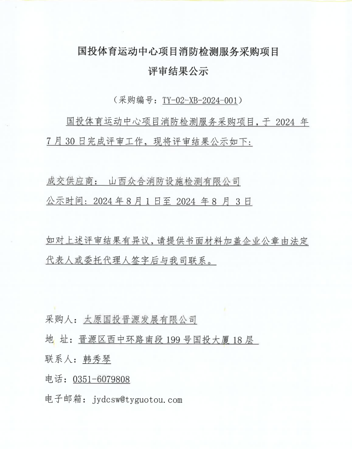 國投體育運(yùn)動中心項目消防檢測服務(wù)采購項目評審結(jié)果公示