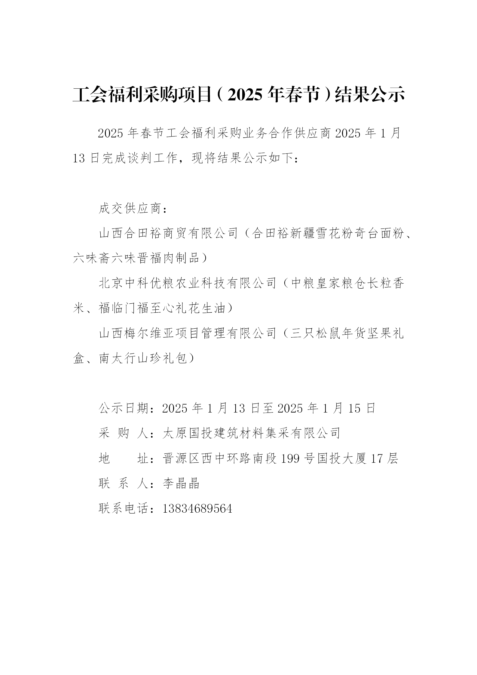 工會福利采購項目(2025年春節(jié))結果公示