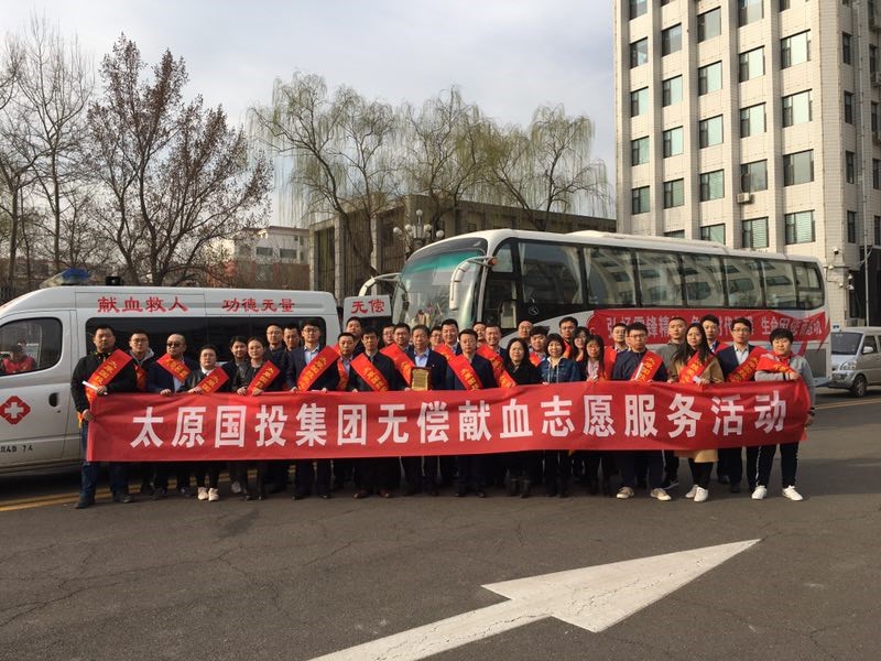 2019年3月19日上午,太原國(guó)投集團(tuán)與太原市人民政府辦公廳、市外僑辦等56家單位在太原市人民政府院內(nèi)聯(lián)合組織了“熱血助力龍城 企業(yè)勇于擔(dān)當(dāng)”無(wú)償獻(xiàn)血活動(dòng)。太原國(guó)投集團(tuán)董事長(zhǎng)蘭衛(wèi)軍、黨委書記馮澤亭等40名領(lǐng)導(dǎo)員工參加了此次活動(dòng),28人通過(guò)了血液檢驗(yàn)完成獻(xiàn)血,獻(xiàn)血總量約達(dá)11200毫升。