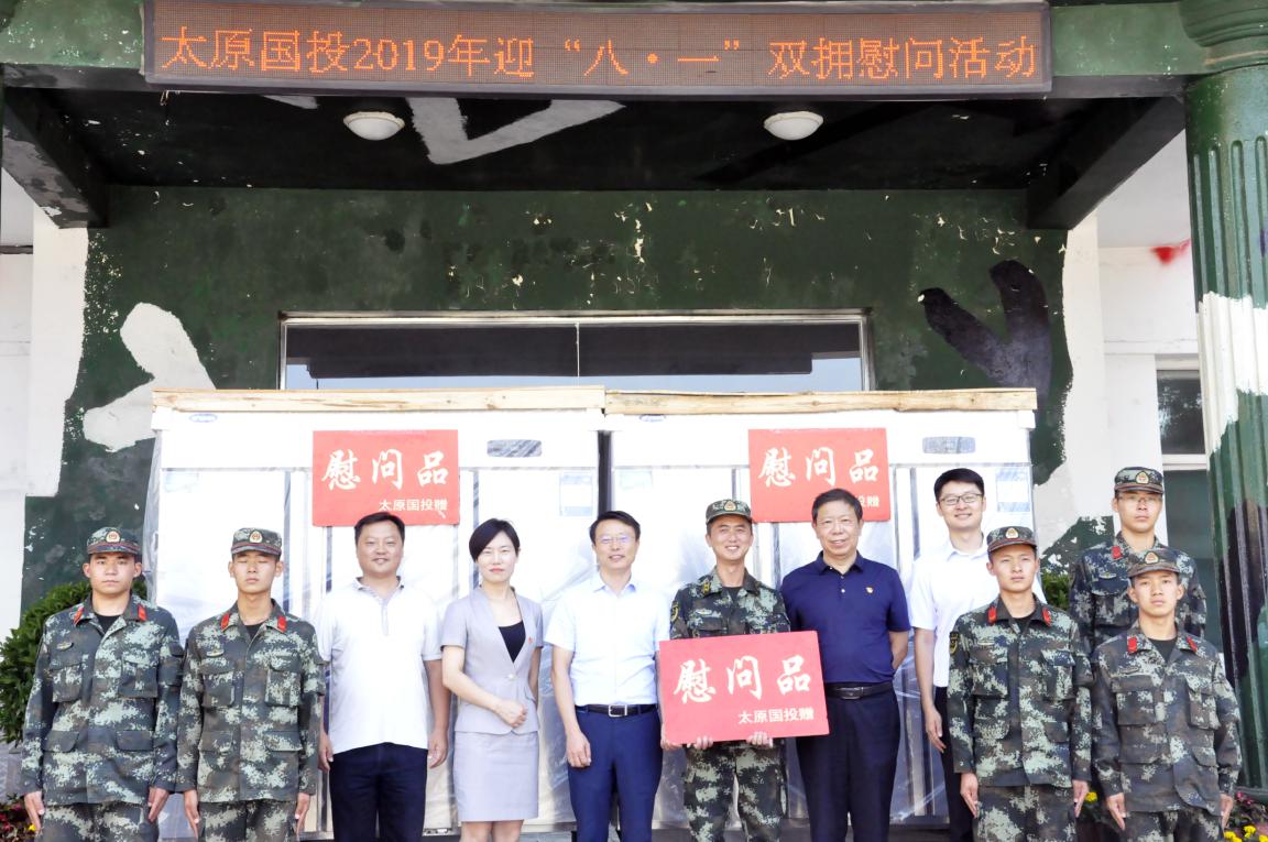 在中國人民解放軍建軍92周年即將到來之際,7月26日上午,太原國投集團(tuán)董事長、總經(jīng)理蘭衛(wèi)軍,黨委書記、副董事長馮澤亭,紀(jì)委書記、監(jiān)事會主席楊柳,董事、副總經(jīng)理崔晶晶,董事、副總經(jīng)理劉冰一行帶著公司全體職工的深情厚誼,看望慰問了武警太原某部官兵,為他們送去了慰問品和節(jié)日的祝福。