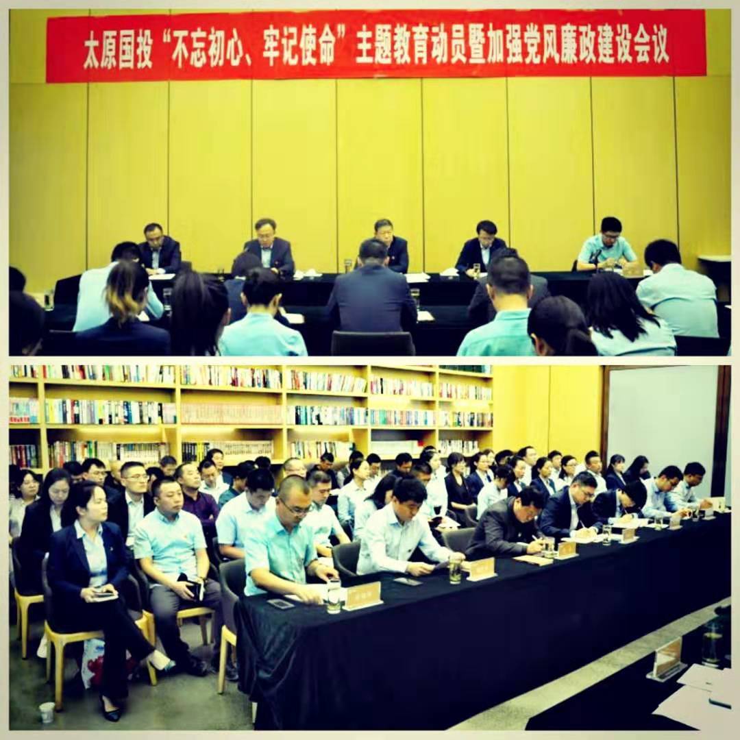 2019年9月19日下午,太原國投集團(tuán)黨委組織召開了“不忘初心、牢記使命”主題教育動員暨加強(qiáng)黨風(fēng)廉政建設(shè)工作會議,集團(tuán)主管及以上領(lǐng)導(dǎo)干部、輔業(yè)公司負(fù)責(zé)人、機(jī)關(guān)全體黨員近70人參加了此次會議。