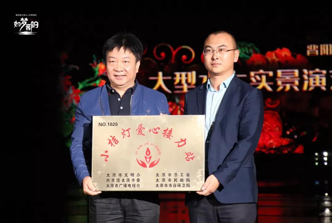 演出開始前,太原廣播電視臺(tái)音樂廣播總監(jiān)王玉軍為晉陽(yáng)湖劇場(chǎng)頒發(fā)了小桔燈愛心接力站牌匾,晉陽(yáng)湖劇場(chǎng)也成為了太原市第1020家小桔燈愛心接力站點(diǎn)。